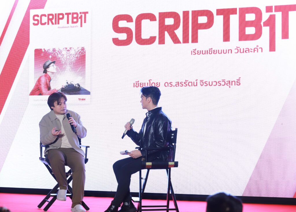 “หนังสือ ScriptBit” พร้อมเชิญ “คุณกอล์ฟ ดร.สรรัตน์ จิรบวรกุล” นักเขียนบทชื่อดัง มาร่วมพูดคุยถึงหนังสือที่ ทำสตูดิโอ ได้ทำการรวบรวมงานเขียนของ ดร.สรรัตน์ ที่ได้ถ่ายทอดความรู้ด้านการเขียนบทแบบเข้าใจง่ายและใช้ได้จริงจากโซเชียลเน็ตเวิร์คส่วนตัว รวมเล่มตีพิมพ์เป็นหนังสือเรียนเขียนบทสำหรับ Script Writer ถ่ายทอดองค์ความรู้เพื่อเป็นแนวทางและแรงบันดาลใจสำหรับนักเขียนบทหน้าใหม่ที่พร้อมก้าวเข้าสู่วงการบันเทิงไทยต่อไป