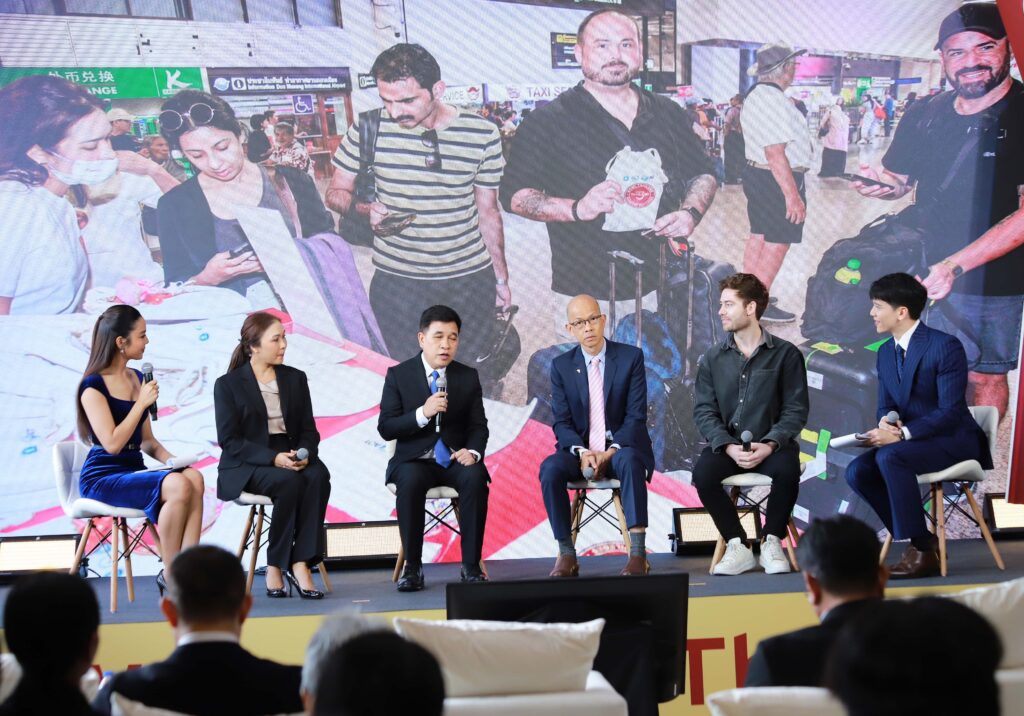 ด้านสินค้าและธุรกิจท่องเที่ยว ททท. เป็นประธานในพิธี พร้อมด้วย นายภูมิกิตติ์ รักแต่งาม รองประธานสภาอุตสาหกรรมท่องเที่ยวแห่งประเทศไทย นางพาณินี ไชยสระแก้ว ผู้อำนวยการฝ่ายการท่าอากาศยาน ท่าอากาศยานสุวรรณภูมิและตัวแทนนักท่องเที่ยว เหล่าอินฟลูเอนเซอร์ให้เกียรติเข้าร่วมงานฯ ณ ห้องโถง