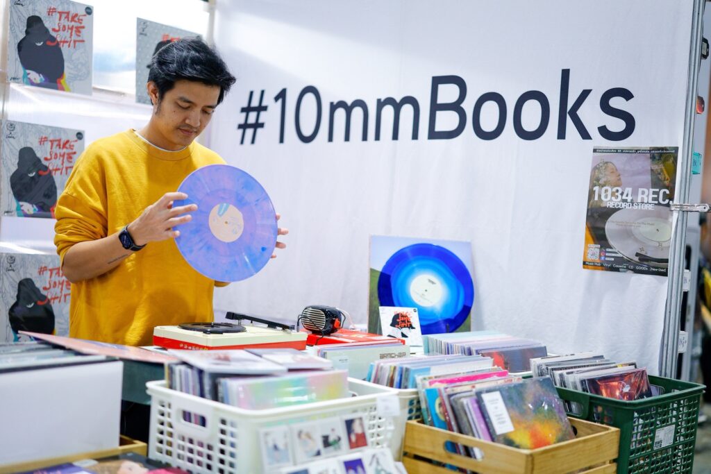 ปิดท้ายด้วย สำนักพิมพ์สิบมิลลิเมตร (Booth F44) ที่สร้างบรรยากาศเหนือชั้นด้วยคอนเซ็ปต์ “Record Store ร้านหนังสือมีแผ่นเสียง” เข้ากับธีมงานได้อย่างสมบูรณ์ หนังสือขายดี “A post you’re tagged in”, “takesomeshit” ผลงานของ ‘พี่เมื่อย–ธวัชพงศ์ วงศ์บุญสิริ’ วง Scrubb และ “My Playlist” กลายเป็นหนังสือที่คนรุ่นใหม่พูดถึงมากที่สุดในโซเชียล