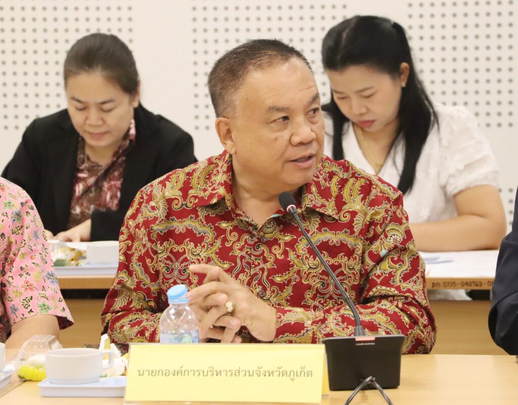 เมื่อวันที่ 21 ตุลาคม 2568 เวลา 09.30 น. ณ ห้องประชุมจันพันวา ศาลากลางจังหวัดภูเก็ต นายเรวัต อารีรอบ นายกองค์การบริหารส่วนจังหวัดภูเก็ต พร้อมด้วยเจ้าหน้าที่สำนักปลัด อบจ.ภูเก็ต เข้าร่วมการประชุมคณะกรรมการบริหารศูนย์ราชการระดับจังหวัด จังหวัดภูเก็ต โดยมี นายสมาวิษฎ์ สุพรรณไพ รองผู้ว่าราชการจังหวัดภูเก็ต เป็นประธานการประชุม ร่วมด้วยหัวหน้าส่วนราชการและหน่วยงานที่เกี่ยวข้อง อาทิ นายณรงค์ อ่อนอินทร์ หัวหน้าสำนักงานจังหวัดภูเก็ต นายวุฒิชัย บำรุงรัตน์ ท้องถิ่นจังหวัดภูเก็ต นายไอศูรย์ สุธรรมเทวกุล ธนารักษ์พื้นที่ภูเก็ต นายประสิทธิ์ สินเสาวภาคย์ รองนายกเทศมนตรีนครภูเก็ต พร้อมคณะกรรมการบริหารศูนย์ราชการระดับจังหวัด