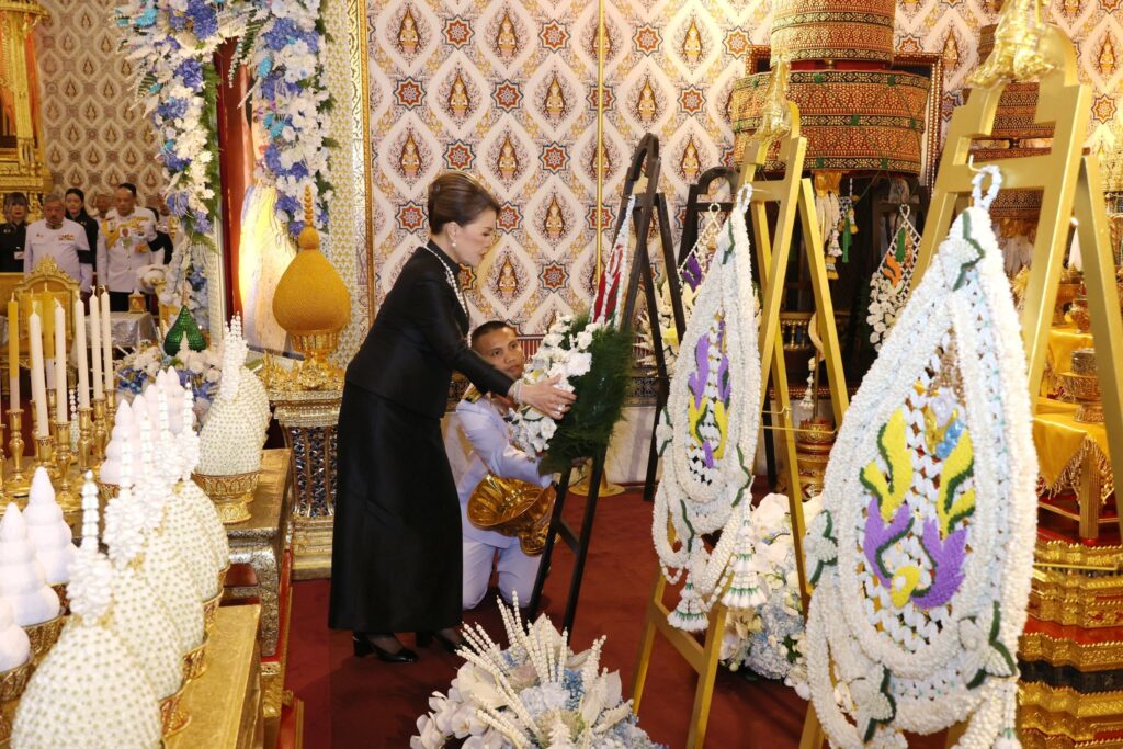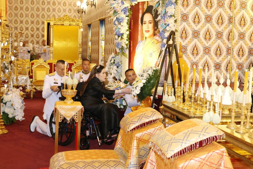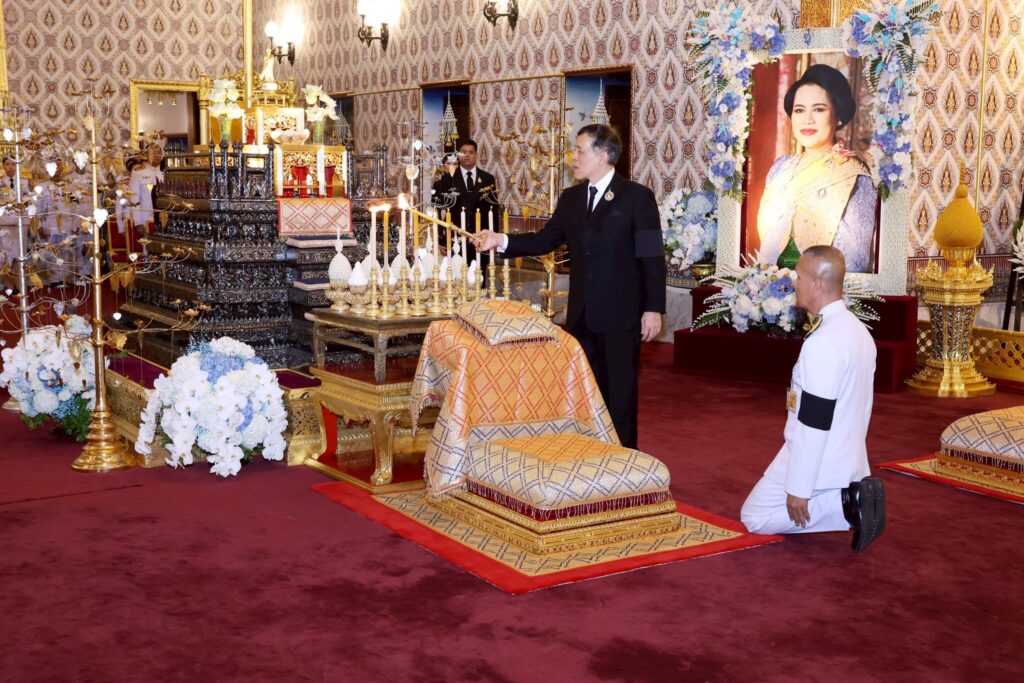 วันนี้ (๒๗ ตุลาคม ๒๕๖๘) เวลา ๑๙.๑๔ น. พระบาทสมเด็จพระเจ้าอยู่หัว และสมเด็จพระนางเจ้า ฯ พระบรมราชินี เสด็จพระราชดำเนินโดยรถยนต์พระที่นั่ง จากพระที่นั่งอัมพรสถาน พระราชวังดุสิต ไปทรงบำเพ็ญพระราชกุศลพระพิธีธรรมสวดพระอภิธรรมพระบรมศพ สมเด็จพระนางเจ้าสิริกิติ์ พระบรมราชินีนาถ พระบรมราชชนนีพันปีหลวง ณ พระที่นั่งดุสิตมหาปราสาท พระบรมมหาราชวัง ในโอกาสนี้ สมเด็จพระเจ้าลูกยาเธอ เจ้าฟ้าทีปังกรรัศมีโชติ มหาวชิโรตตมางกูร สิริวิบูลยราชกุมาร และเจ้าคุณพระสินีนาถ พิลาสกัลยาณี โดยเสด็จในการนี้ด้วย ในการนี้ ทูลกระหม่อมหญิงอุบลรัตนราชกัญญา สิริวัฒนาพรรณวดี สมเด็จพระเจ้าลูกเธอ เจ้าฟ้าสิริวัณณวรี นารีรัตนราชกัญญา และท่านผู้หญิงพลอยไพลิน เจนเซน ทรงรอรับเสด็จ ณ พระที่นั่งดุสิตมหาปราสาท พระบรมมหาราชวัง เมื่อเสด็จพระราชดำเนินถึงพระที่นั่งดุสิตมหาปราสาท พระบาทสมเด็จพระเจ้าอยู่หัว เสด็จพระราชดำเนินไปยังที่ประดิษฐานพระบรมศพ ทรงจุดธูปเทียนเครื่องทองน้อย ทรงกราบ แล้วเสด็จพระราชดำเนินไปทรงจุดธูปเทียนเครื่องนมัสการพานทองสองชั้นบูชาพระพุทธรูปประจำพระชนมวาร ที่หน้าพระแท่นพระนพปฎลมหาเศวตฉัตร ทรงกราบ ต่อจากนั้น เสด็จพระราชดำเนินไปยังมุขหน้าพระที่นั่งดุสิตมหาปราสาท ทรงจุดธูปเทียนเครื่องบูชากระบะมุกที่หน้าพระแท่นเตียงพระพิธีธรรมสวดพระอภิธรรม ด้านตะวันออก และด้านตะวันตก ทรงคม แล้วประทับพระราชอาสน์ เมื่อพระพิธีธรรมสวดพระอภิธรรม จบแล้ว พระบาทสมเด็จพระเจ้าอยู่หัว เสด็จพระราชดำเนินไปทรงทอดผ้าไตรพระราชาคณะ ๑ รูปที่ถวายอดิเรก และพระพิธีธรรมสวดพระอภิธรรม ๘ รูป พระสงฆ์สดับปกรณ์ พระบาทสมเด็จพระเจ้าอยู่หัว และสมเด็จพระนางเจ้า ฯ พระบรมราชินี ทรงหลั่งทักษิโณทก พระสงฆ์ถวายอนุโมทนา ถวายอดิเรก ถวายพระพรลา จากนั้น พระบาทสมเด็จพระเจ้าอยู่หัว เสด็จพระราชดำเนินไปทรงกราบที่หน้าเครื่องนมัสการหน้าพระแท่นพระนพปฎลมหาเศวตฉัตร เสร็จแล้ว พระบาทสมเด็จพระเจ้าอยู่หัว และสมเด็จพระนางเจ้า ฯ พระบรมราชินี เสด็จพระราชดำเนินไปทรงกราบที่หน้าพระโกศ ทรงรับการถวายความเคารพของผู้มาเฝ้าทูลละอองธุลีพระบาท แล้วเสด็จออกจากพระที่นั่งดุสิตมหาปราสาท ไปประทับรถยนต์พระที่นั่ง เสด็จพระราชดำเนินกลับ#ทรงพระเจริญ