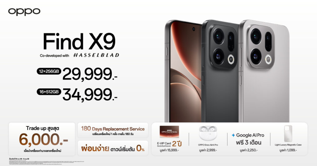 และสามารถเป็นเจ้าของ OPPO Find X9 Series ได้ง่ายมากขึ้นด้วยโปรโมชั่นมากมายดังต่อไปนี้
