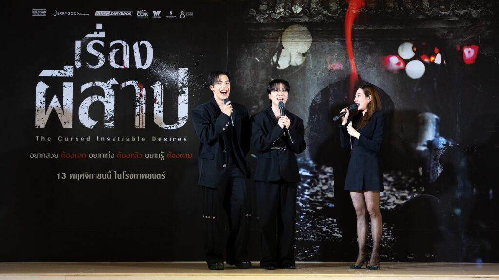 หล่อออร่าพุ่ง เรียกเสียงกรี๊ดจากแฟน ๆ กับการปรากฏตัวของสองนักแสดงหนุ่มจากซีรีส์สุดฮอต “Teach Me Touch Me สัมผัสกันต์ธีร์” ได้แก่ “ฉลาม – สยาม พิพัฒน์เจริญวงศ์” และ “เจมส์ – พงศภัค ราชาภรณ์” ร่วมพูดคุย พร้อมแชร์มุมมองต่อ “คำสาปแห่งความปรารถนา” ในแบบของตนเอง พร้อมเชิญชวนแฟน ๆ ชาวไทยมาร่วมพิสูจน์ความสยองครั้งใหม่ด้วยกันในโรงภาพยนตร์