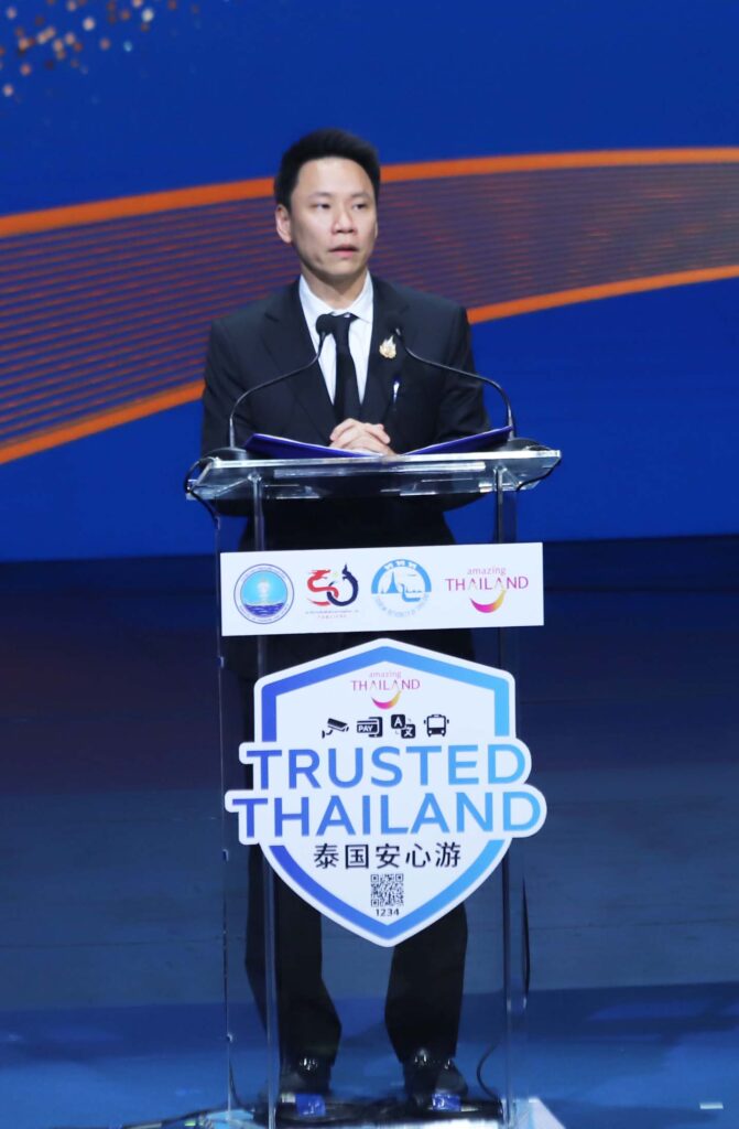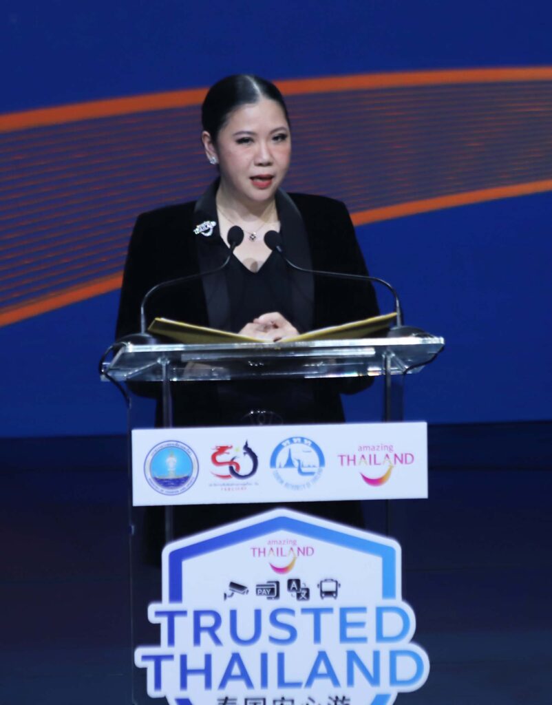 นายอรรถกร ศิริลัทธยากร รัฐมนตรีว่าการกระทรวงการท่องเที่ยวและกีฬา กล่าวว่า ตลอด 10 เดือนที่ผ่านมาของปี 2568 ประเทศไทยต้อนรับนักท่องเที่ยวต่างชาติรวมประมาณ 26.7 ล้านคน สำหรับนักท่องเที่ยวชาวจีนมีจำนวน 3.7 ล้านคน คิดเป็นสัดส่วนประมาณ 15% ดังนั้น รัฐบาลจึงได้ดำเนินมาตรการสร้างความมั่นใจในการเดินทางให้นักท่องเที่ยวอย่างต่อเนื่องในทุกมิติ ไม่ว่าจะเป็นการยกระดับมาตรฐานสถานที่ท่องเที่ยว การประสานความร่วมมือกับหน่วยงานด้านความมั่นคง การสื่อสารข้อมูลที่ถูกต้อง รวมถึงการอำนวยความสะดวกแก่นักท่องเที่ยว ด้วยโครงการ “Trusted Thailand” ที่ดำเนินการโดย ททท. เพื่อเสริมความเชื่อมั่นให้กับนักท่องเที่ยวในการเลือกสถานประกอบการโรงแรมที่พัก ร้านอาหาร และแหล่งท่องเที่ยว ผ่านตราสัญลักษณ์ Trusted Thailand ที่เปรียบเสมือนสัญลักษณ์ที่สร้างความมั่นใจในด้านความปลอดภัยของนักท่องเที่ยวให้กลับมาเดินทางท่องเที่ยวประเทศไทยอีกครั้ง โดยเฉพาะในกลุ่มนักท่องเที่ยวจีนให้เกิดการเดินทางอย่างต่อเนื่อง
