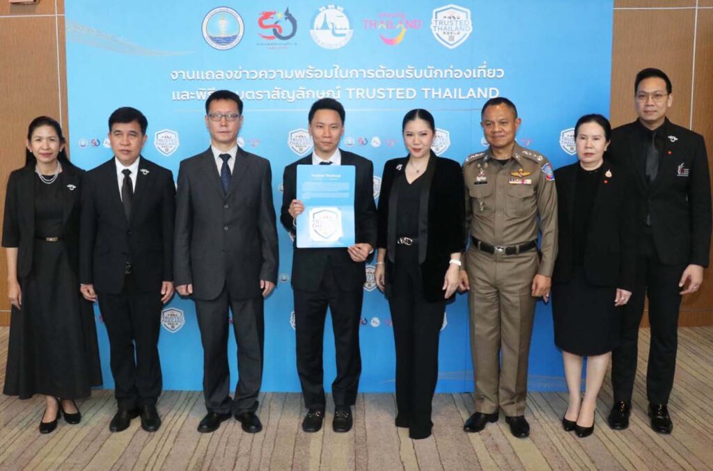 บริษัท อโก้ดา เซอร์วิสเซส จำกัด บริษัท แกร็บแท๊กซี่ (ประเทศไทย) จำกัด ฯลฯ ร่วมแถลงข่าวความพร้อมต้อนรับนักท่องเที่ยวและมอบตราสัญลักษณ์ “Trusted Thailand” ให้กับสถานประกอบการที่เข้าร่วมโครงการ เพื่อรับรองมาตรฐานคุณภาพด้านความปลอดภัยและสร้างความเชื่อมั่นในการเดินทางให้กับนักท่องเที่ยวทั่วโลก