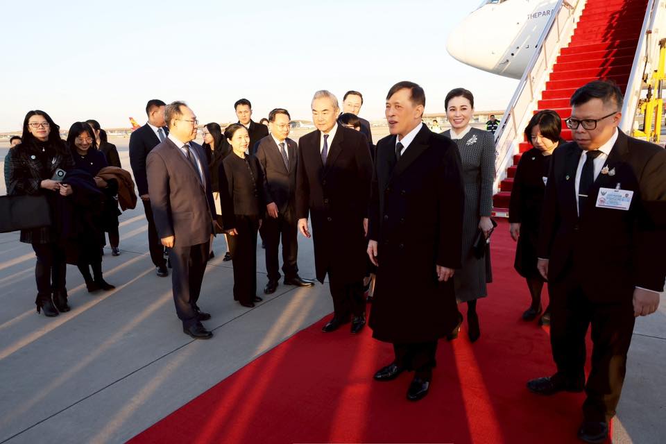 วันนี้ (วันพฤหัสบดี ที่ ๑๓ พฤศจิกายน พุทธศักราช ๒๕๖๘) เวลา ๑๐.๒๐ น. พระบาทสมเด็จพระเจ้าอยู่หัว และสมเด็จพระนางเจ้า ฯ พระบรมราชินี เสด็จพระราชดำเนินโดยรถยนต์พระที่นั่ง จากพระที่นั่งอัมพรสถาน พระราชวังดุสิต ไปยังท่าอากาศยานทหารดอนเมือง เพื่อประทับเครื่องบินพระที่นั่งของบริษัท การบินไทย จำกัด (มหาชน) เที่ยวบินที่ ทีจี ๘๘๘๖ เสด็จพระราชดำเนินเยือนสาธารณรัฐประชาชนจีนอย่างเป็นทางการ (State Visit) ระหว่างวันที่ ๑๓ – ๑๗ พฤศจิกายน พุทธศักราช ๒๕๖๘ ตามคำทูลเชิญของนายสี จิ้นผิง ประธานาธิบดีแห่งสาธารณรัฐประชาชนจีน การเสด็จพระราชดำเนินเยือนในครั้งนี้ จะเป็นการกระชับสัมพันธไมตรีที่ใกล้ชิดระหว่างประเทศทั้งสองให้แน่นแฟ้นยิ่งขึ้น และส่งเสริมความเข้าใจอันดีระหว่างประชาชนทั้งสองประเทศให้เพิ่มพูนยิ่งขึ้น อีกประการหนึ่งที่สำคัญคือจะเป็นวาระแห่งการเฉลิมฉลองการสถาปนาความสัมพันธ์ทางการทูตไทย-จีน ครบ ๕๐ ปี เวลา ๑๖.๐๓ น. (เวลาท้องถิ่น) พระบาทสมเด็จพระเจ้าอยู่หัว และสมเด็จพระนางเจ้า ฯ พระบรมราชินี เสด็จพระราชดำเนินโดยเครื่องบินพระที่นั่งของบริษัท การบินไทย จำกัด (มหาชน) เที่ยวบินที่ ทีจี ๘๘๘๖ ถึงยังท่าอากาศยานนานาชาติกรุงปักกิ่ง สาธารณรัฐประชาชนจีน ในการนี้ พระราชทานพระบรมราชวโรกาสให้ นายฉัตรชัย วิริยเวชกุล เอกอัครราชทูต ณ กรุงปักกิ่ง เฝ้าทูลละอองธุลีพระบาท และกราบบังคมทูลเบิก นายหง เหล่ย (Mr. Hong Lei) ผู้ช่วยรัฐมนตรีว่าการกระทรวงการต่างประเทศและอธิบดีกรมพิธีการทูต สาธารณรัฐประชาชนจีน เฝ้าทูลละอองธุลีพระบาท กราบบังคมทูลเชิญเสด็จลงจากเครื่องบินพระที่นั่ง โดยมี นายหวัง อี้ (Mr. Wang Yi) สมาชิกกรมการเมือง ผู้อำนวยการสำนักงานคณะกรรมการกลางด้านกิจการต่างประเทศของพรรคคอมมิวนิสต์จีน และรัฐมนตรีว่าการกระทรวงการต่างประเทศ สาธารณรัฐประชาชนจีน พร้อมด้วยข้าราชการระดับสูง สาธารณรัฐประชาชนจีน เฝ้าทูลละอองธุลีพระบาทรับเสด็จ ในโอกาสนี้ เด็กชายชาวจีนทูลเกล้าทูลกระหม่อมถวายช่อดอกไม้แด่พระบาทสมเด็จพระเจ้าอยู่หัว และเด็กหญิงชาวจีนทูลเกล้าทูลกระหม่อมถวายช่อดอกไม้แด่สมเด็จพระนางเจ้า ฯ พระบรมราชินี เสร็จแล้ว ทรงพระดำเนินผ่านแถวกองทหารเกียรติยศ เสร็จแล้ว นายหวัง อี้ (Mr. Wang Yi) สมาชิกกรมการเมือง ฯ และรัฐมนตรีว่าการกระทรวงการต่างประเทศสาธารณรัฐประชาชนจีน ส่งเสด็จ จากนั้น พระบาทสมเด็จพระเจ้าอยู่หัว และสมเด็จพระนางเจ้า ฯ พระบรมราชินี ประทับรถยนต์พระที่นั่ง เสด็จพระราชดำเนินไปยังโรงแรมไชนาเวิลด์ กรุงปักกิ่ง (China World Hotel, Beijing) ซึ่งสาธารณรัฐประช