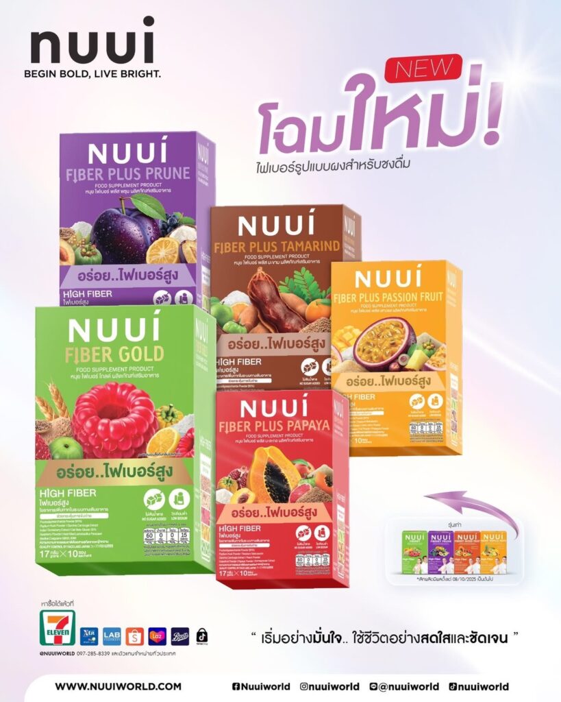 และ11.11 นี้ ยังส่งท้ายอวยพรวันครบรอบบริษัท NUUIWORLD และเป็นวันเกิดของคุณนุ้ย ศิริพร ท่านประธานบริษัทอีกด้วย พร้อมส่งมอบโปรพิเศษ ให้ในเดือนเกิดกับไฟเบอร์ยุคใหม่ที่ไม่ได้แค่ช่วยขับถ่าย แต่ช่วยดูแลลำไส้แบบครบ 3 ระดับ NUUI Fiber Gold ไฟเบอร์ที่รวม 3 Biotics ทั้ง Pre, Pro และ Postbiotics ในซองเดียว ที่ช่วยให้ลำไส้แข็งแรงจากภายใน เสริมภูมิคุ้มกันให้ร่างกาย และดูแลระบบขับถ่ายให้สมดุลในทุกวันด้วยไฟเบอร์สูง จากพืชธรรมชาติ ช่วยกระตุ้นระบบขับถ่าย, ผสานพลัง “3 Biotics” เพื่อการดูแลลำไส้อย่างครบวงจร Prebiotic (FOS) บำรุงจุลินทรีย์ดีในลำไส้, Probiotic (Bacillus Coagulans) เสริมจุลินทรีย์ดี ลดอาการท้องอืด, Postbiotic (Heat-Killed Lactobacillus Paracasei) จากญี่ปุ่น ช่วยเสริมภูมิคุ้มกันให้ร่างกาย ไม่เติมน้ำตาล (No Sugar Added) และโซเดียมต่ำ (Low Sodium) รสชาติ “ราสป์เบอร์รี่เลมอน” สดชื่น ดื่มง่าย ดื่มได้ทุกวันด้วย 9 ส่วนผสมดีๆ จากธรรมชาติทั่วโลก