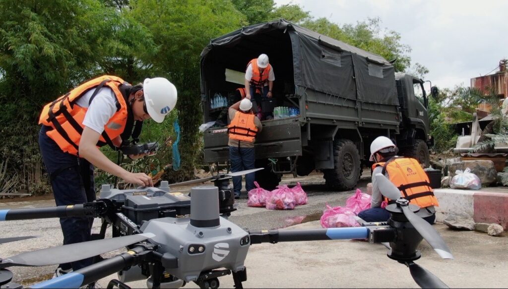 บริษัท สไกลเลอร์ โซลูชั่นส์ จำกัด หรือ สไกลเลอร์ โซลูชั่นส์ (Skyller Solutions) ผู้เชี่ยวชาญด้านการให้บริการอากาศยานไร้คนขับ (UAV) หรือ โดรน ในกลุ่มของบริษัท เอไอ แอนด์ โรโบติกส์ เวนเจอร์ส จำกัด หรือ เออาร์วี (ARV) ร่วมกับบริษัท ปตท.สำรวจและผลิตปิโตรเลียม จำกัด (มหาชน) หรือ ปตท.สผ. (PTTEP) เล็งเห็นถึงความเดือดร้อนของประชาชนในพื้นที่ภาคใต้ โดยเฉพาะในพื้นที่ “สีแดง” หรือพื้นที่เฝ้าระวังที่รถยนต์และเรือท้องแบนเริ่มพบข้อจำกัด จึงนำเทคโนโลยี”โดรนเพื่อการขนส่ง” (Delivery Drone) และ “โดรนเพื่อการสำรวจและเฝ้าระวัง” ((Surveillance Drone) เข้ามาเสริมทัพ สนับสนุนภารกิจส่งมอบความช่วยเหลือผ่านศูนย์บรรเทาสาธารณภัย มณฑลทหารบกที่42 ค่ายเสนาณรงค์ จังหวัดสงขลา ช่วยลำเลียงถุงยังชีพและเวชภัณฑ์ส่งตรง ถึงมือผู้ประสบภัยในจุดที่เข้าถึงได้ยาก เพื่อแก้ปัญหาความล่าช้าและลดความเสี่ยงให้ทีมกู้ภัยหน้างาน