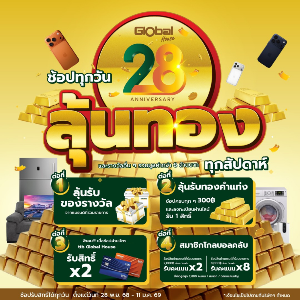 #28ปีโกลบอลเฮ้าส์แจกใหญ่ลุ้นทองทุกสัปดาห์ #28ปีโกลบอลเฮ้าส์ #โกลบอลเฮ้าส์แจกทอง #โกลบอลเฮ้าส์ลุ้นทองทุกสัปดาห์ #โกลบอลเฮ้าส์แจกทองทุกสัปดาห์ #แจกทอง #โกลบอลเฮ้าส์ #globalhouse #ครบหลากหลายให้บ้านคุณ