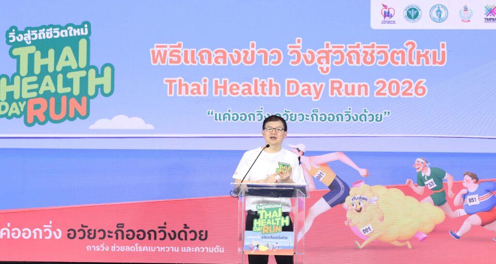 นพ.พงศ์เทพ วงศ์วัชรไพบูลย์ ผู้จัดการกองทุน สสส. กล่าวว่า สถานการณ์โรคไม่ติดต่อ (NCDs) ของคนไทยในรอบ 20 ปี (ปี 2547-2568) มีแนวโน้มเพิ่มขึ้น ทั้งเบาหวาน ความดันโลหิตสูง โดยเฉพาะภาวะน้ำหนักเกินและอ้วนที่เพิ่มขึ้นอย่างรวดเร็ว ข้อมูลจากการสำรวจสุขภาพคนไทยด้วยการตรวจร่างกาย ครั้งที่ 7 (ปี2567-2568) พบคนไทยอายุ 15 ปีขึ้นไป ป่วยเบาหวาน 10.6% หรือ 6.1 ล้านคน ป่วยโรคความดันโลหิตสูง 29.5% หรือ 17.5 ล้านคน และมีภาวะน้ำหนักเกินและโรคอ้วน 45% หรือ 27.4 ล้านคน ส่งผลให้ไทยไม่บรรลุเป้าหมายขององค์การอนามัยโลก (WHO) ที่กำหนดให้ภายในปี 2568 ไทยต้องลดโรคเบาหวานไม่เกิน 7.3% ความดันโลหิตไม่เกิน 17% และโรคอ้วนไม่เกิน 36.2% ของประชากรทั้งประเทศ ทั้งนี้ สสส. มุ่งจุดประกาย และสร้างกระแสกิจกรรมทางกาย เพื่อปรับเปลี่ยนพฤติกรรมที่ทำให้มีสุขภาพดี ลดความเสี่ยงเกิดโรค NCDs โดยได้ริเริ่มและผลักดันให้คนไทยลุกขึ้นมาเริ่มวิ่งอย่างถูกวิธี ผ่านโครงการ Thai Health Day Run 2026 จัดต่อเนื่องเป็นปีที่ 13 ที่เป็นมากกว่างานวิ่ง แต่ได้ป็นจุดเริ่มต้นของการสร้างวิถีชีวิตใหม่ที่ทำให้คนไทยแข็งแรงขึ้นในทุกมิติ