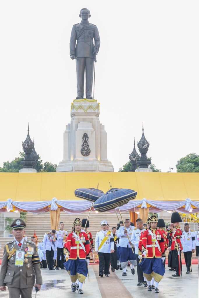 วันนี้ ๕ ธันวาคม ๒๕๖๘ เวลา ๑๗.๑๒ น. พระบาทสมเด็จพระเจ้าอยู่หัว และสมเด็จพระนางเจ้า ฯ พระบรมราชินี เสด็จพระราชดำเนินไปทรงวางพุ่มดอกไม้ถวายราชสักการะพระบรมราชานุสาวรีย์พระบาทสมเด็จพระบรมชนกาธิเบศร มหาภูมิพลอดุลยเดชมหาราช บรมนาถบพิตร ณ อุทยานเฉลิมพระเกียรติ พระบาทสมเด็จพระบรมชนกาธิเบศร มหาภูมิพลอดุลยเดชมหาราช บรมนาถบพิตร เขตดุสิต กรุงเทพมหานคร ในโอกาสนี้ สมเด็จพระเจ้าลูกเธอ เจ้าฟ้าสิริวัณณวรี นารีรัตนราชกัญญา โดยเสด็จในการนี้ด้วย เมื่อเสด็จพระราชดำเนินถึงพระบรมราชานุสาวรีย์พระบาทสมเด็จพระบรมชนกาธิเบศร มหาภูมิพลอดุลยเดชมหาราช บรมนาถบพิตรพระบาทสมเด็จพระเจ้าอยู่หัว และสมเด็จพระนางเจ้า ฯ พระบรมราชินี ทรงวางพุ่มดอกไม้ เสร็จแล้ว พระบาทสมเด็จพระเจ้าอยู่หัว และสมเด็จพระนางเจ้า ฯ พระบรมราชินี ทรงจุดธูปเทียนเครื่องราชสักการะทองทิศ และทรงจุดธูปเทียนเครื่องทองน้อยถวายราชสักการะ ทรงกราบ สมเด็จพระเจ้าลูกเธอ เจ้าฟ้าสิริวัณณวรี นารีรัตนราชกัญญา ทรงวางพุ่มดอกไม้ส่วนพระองค์ ทรงจุดธูปเทียน เครื่องทองน้อยถวายราชสักการะ ทรงกราบ เสร็จแล้ว ประทับรถยนต์พระที่นั่ง เสด็จพระราชดำเนินไปในการพระราชพิธีทรงบำเพ็ญพระราชกุศลทักษิณานุปทาน เนื่องในวันคล้ายวันพระบรมราชสมภพพระบาทสมเด็จพระบรมชนกาธิเบศร มหาภูมิพลอดุลยเดชมหาราช บรมนาถบพิตร และสถาปนาพระอิสริยศักดิ์เฉลิมพระนามพระอัฐิสมเด็จพระเจ้าบรมวงศ์เธอ เจ้าฟ้ากัลยาณิวัฒนา กรมพระนราธิวาสราชนครินทร์ บดินทรเชษฐภคินี พุทธศักราช ๒๕๖๘ ณ พระที่นั่งอมรินทรวินิจฉัย พระบรมมหาราชวัง #ทรงพระเจริญ
