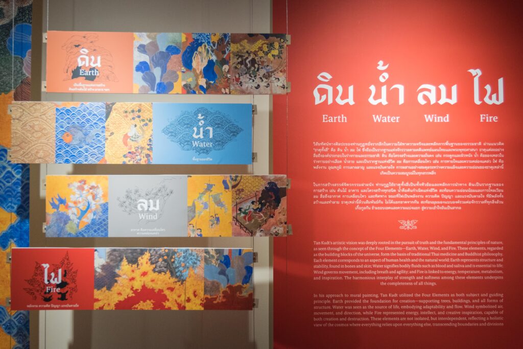 ท่านกูฏยังใช้ธรรมชาติเป็นวิธีเนรมิตผลงานจากธาตุทั้ง 4 ได้แก่ ดิน น้ำ ลม ไฟ ที่ประกอบกันเป็นจักรวาล ธาตุดิน เป็นพื้นฐานแห่งการสร้างสรรค์ (ดินให้กำเนิดต้นไม้ ) ธาตุน้ำ เป็นพื้นฐานของชีวิต ธาตุลม คืออากาศ ความเคลื่อนไหว และความคล่องแคล่ว ธาตุไฟ คือพลังงาน (ความคิด ปัญญา แรงบันดาลใจ)