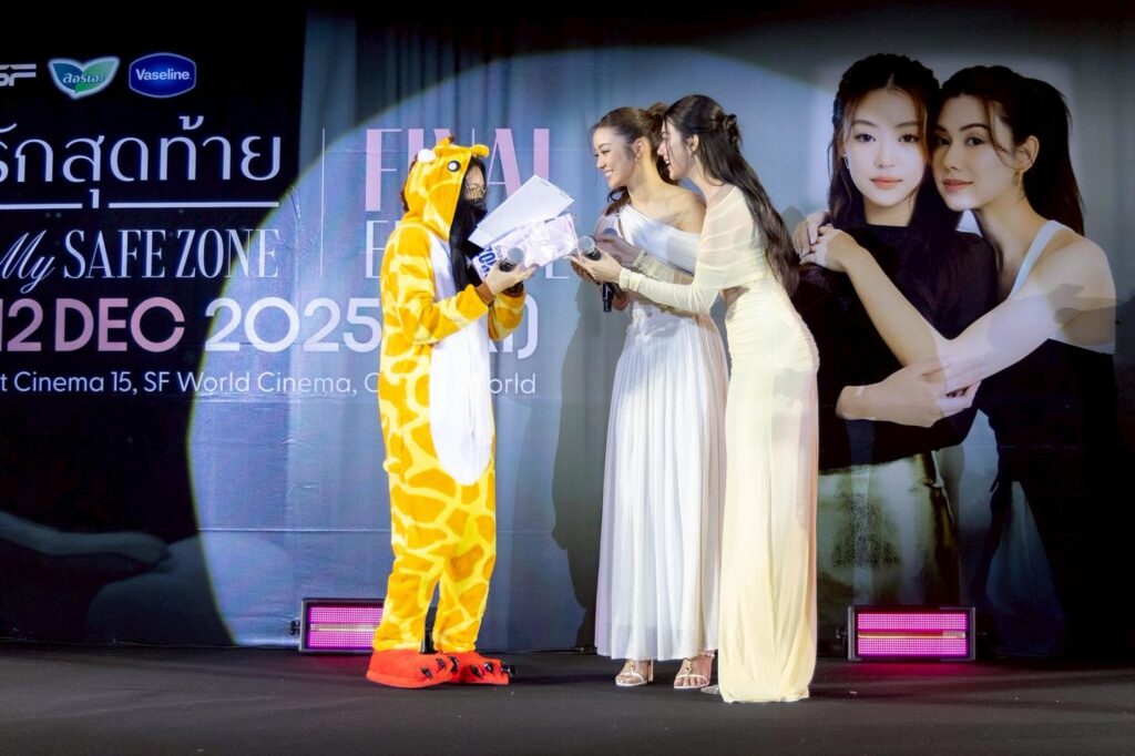 ตอบรับกระแสความแรงไม่หยุด! กับซีรีส์แซฟฟิกแห่งปี “รักสุดท้าย My Safe Zone The Series” ส่งท้ายความปังด้วยอีเวนต์สุดเอ็กซ์คลูซีฟ ปิดโรงภาพยนตร์ชวนแฟนคลับมาร่วมฟินในโมเมนต์สุดพิเศษในงาน“รักสุดท้าย My Safe Zone Final Episode” ณ Cinema 15, SF World Cinema, Central World ชมตอนจบแบบใกล้ชิดติดจอไปกับสองนักแสดงนำ “ลีน่า ลลินา – หมิว ณัชชา” ที่มาพร้อมเสียงกรี๊ดและพลังเชียร์กระหึ่มตลอดงานตอกย้ำกระแสความปังของทั้งคู่ที่มีแฟน ๆ ทั้งไทยและต่างประเทศให้การตอบรับดีเกินคาด โดยบรรยากาศก่อนเริ่มงานเหล่าแฟนคลับพร้อมใจรวมตัวโชว์พลังรักจัดซุ้มดอกไม้แสนสวยมอบให้ “ลีน่า – หมิว” ขณะที่ก่อนเริ่มงานก็มีแจกปฏิทินช่อง 3 ให้แฟน ๆ ที่มาร่วมงานได้เก็บเป็นที่ระลึก ก่อนจะพาเข้าสู่บรรยากาศภายในงานอย่างเต็มรูปแบบด้วยพิธีกรในงาน “สายฝน ชีช้าง” ซึ่งอบอวลไปด้วยมวลความสุขคึกคักไปด้วยเสียงหัวเราะและรอยยิ้มแน่นทุกที่นั่ง เริ่มความฟินแบบเต็มพิกัดด้วยโชว์เปิดกับเพลง “แนะนําให้เป็นแฟนเรา” และทักทายแฟน ๆ เรียกเสียงกรี๊ดลั่นโรง ก่อนเปิดใจพูดถึงซีรีส์ที่เดินทางมาถึงตอนสุดท้าย ความผูกพันที่ได้ร่วมงานกับทีมนักแสดง อีกทั้งแฟน ๆได้เขียน Note Safe ถึงอลินและเจน ให้สองสาวได้ร่วมพูดคุยบนเวทีเพิ่มดีกรีความอบอุ่นหัวใจ ก่อนจะพาไปฟินกันต่อกับกิจกรรมสุดฮา “Role Play รักสุดท้าย My Safe Zone” โดยทั้งคู่จะต้องเลือกซีนในซีรีส์มาสลับบทบาทเล่นเป็นกันและกัน ทำเอาแฟน ๆ ฟินจนแทบสลบ และต่อด้วยช่วงสุ่มผู้โชคดีขึ้นมาร่วมแสดงซีนในซีรีส์ ทำเอาทั้งฮอลล์เหยินหาคลินิกหมอฟันใกล้ฉันแทบไม่ทัน ต่อด้วยเกม “ซัมซัมซัม” หาผู้ชนะที่ไม่หันหน้าไปทางเดียวกับที่สองสาวบอ ก่อนลีน่าหมิวจะร้องเพลง รักแล้วไม่รู้ (ดีกว่ารู้แล้วไม่รัก) + ที่ปลอดภัยใกล้ฉัน และไปนั่งดูซีรีส์ตอนจบพร้อมกัน ปิดท้ายคํ่าคืนพิเศษนี้ด้วยบทเพลง “รักนานๆ” พร้อมมอบดอกไม้แทนคำขอบคุณกลายเป็นโมเมนต์อบอุ่นน่ารักตลอดจนจบงาน และสำหรับใครที่พลาดชมรอบพิเศษในครั้งนี้ก็ไม่ต้องเสียใจไป สามารถตามไปรับชมและให้กำลังใจ “ลีน่า-หมิว” ย้อนหลังได้ทางออนไลน์ที่ 3Plus ในซีรีส์ “รักสุดท้าย My Safe Zone The Series”