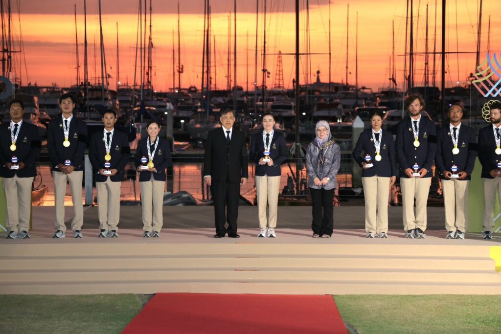 วันที่ ๑๘ ธันวาคม ๒๕๖๘ เวลา ๑๗.๕๘ น. พระบาทสมเด็จพระเจ้าอยู่หัว และสมเด็จพระนางเจ้า ฯ พระบรมราชินี เสด็จพระราชดำเนินไปยังบริเวณพิธีพระราชทานเหรียญรางวัลการแข่งขันกีฬาเรือใบ ในการแข่งขันกีฬาซีเกมส์ ครั้งที่ ๓๓ พ.ศ. ๒๕๖๘ ณ ที่นั้น นายอนุทิน ชาญวีรกูล นายกรัฐมนตรี ร้อยเอก ธรรมนัส พรหมเผ่า รองนายกรัฐมนตรี ประธานกรรมการการกีฬาแห่งประเทศไทย ผู้ช่วยศาสตราจารย์พิมล ศรีวิกรม์ ประธานคณะกรรมการโอลิมปิคแห่งประเทศไทย ในพระบรมราชูปถัมภ์ นายอรรถกร ศิริลัทธยากร รัฐมนตรีว่าการกระทรวงการท่องเที่ยวและกีฬา พร้อมด้วยคณะกรรมการจัดงาน ฯ เฝ้าทูลละอองธุลีพระบาทรับเสด็จ จากนั้น เสด็จเข้าพลับพลาพิธี สมเด็จพระนางเจ้า ฯ พระบรมราชินี เสด็จพระราชดำเนินไปยังแถวนักกีฬาทีมชาติไทย รัฐมนตรีว่าการกระทรวงการท่องเที่ยวและกีฬา กราบบังคมทูลรายงานผลการแข่งขันกีฬาเรือใบ “เอส เอส แอล ๔๗” (SSL 47) ในการแข่งขันกีฬาซีเกมส์ ครั้งที่ ๓๓ พ.ศ. ๒๕๖๘ พิธีกรดำเนินรายการ กราบบังคมทูลเบิกนักกีฬาเรือใบที่ได้รับเหรียญรางวัลรองชนะเลิศอันดับที่ ๓ ประเทศเมียนมา รองชนะเลิศอันดับที่ ๒ ประเทศมาเลเซีย และ สมเด็จพระนางเจ้า ฯ พระบรมราชินี ทรงเป็นตัวแทนนักกีฬาเรือใบทีมชาติไทย ชนะเลิศอันดับที่ ๑ เข้ารับพระราชทานเหรียญรางวัลชนะเลิศอันดับที่ ๑ และตุ๊กตา (มาสคอร์ต) การแข่งขัน ฯจากพระบาทสมเด็จพระเจ้าอยู่หัวจากนั้น ทรงร่วมพิธีเชิญธงชาติทีมชนะเลิศอันดับที่ ๑ รองชนะเลิศอันดับที่ ๒ และรองชนะเลิศอันดับที่ ๓ ขึ้นสู่ยอดเสา เสร็จแล้ว เสด็จพระราชดำเนินไปยังแท่นรางวัลนักกีฬา เพื่อฉายพระบรมฉายาลักษณ์ ร่วมกับสมเด็จพระนางเจ้า ฯ พระบรมราชินี และนักกีฬาที่ได้รับรางวัลทั้ง ๓ ชาติ สมควรแก่เวลา จึงประทับรถยนต์พระที่นั่ง เสด็จพระราชดำเนินไปยังกองการบินทหารเรือ สนามบินอู่ตะเภา กองเรือยุทธการ อำเภอบ้านฉาง จังหวัดระยอง ครั้นเสด็นพระราชดำเนินถึง พระบาทสมเด็จพระเจ้าอยู่หัว และสมเด็จพระนางเจ้า ฯ พระบรมราชินี ทรงวางพวงมาลัย และทรงจุดธูปเทียนเครื่องทองน้อยสักการะอนุสาวรีย์ พลเรือเอก พระเจ้าบรมวงศ์เธอ พระองค์เจ้าอาภากรเกียรติวงศ์ กรมหลวงชุมพรเจตอุดมศักดิ์ ทรงกราบ เสร็จแล้ว ประทับเครื่องบินพระที่นั่ง เสด็จพระราชดำเนินกลับกรุงเทพมหานคร#ทรงพระเจริญ