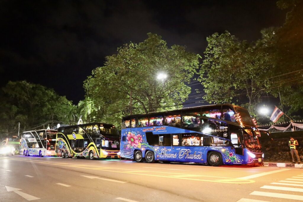ประชาชนผู้ร่วมเดินทางได้พร้อมใจกันรวมตัว ณ องค์การบริหารส่วนจังหวัดภูเก็ต เพื่อขึ้นรถโดยสารปรับอากาศที่จัดเตรียมไว้ โดยมีการจัดเจ้าหน้าที่ประจำรถทุกคัน เพื่อดูแลความปลอดภัยตลอดการเดินทางอย่างใกล้ชิด