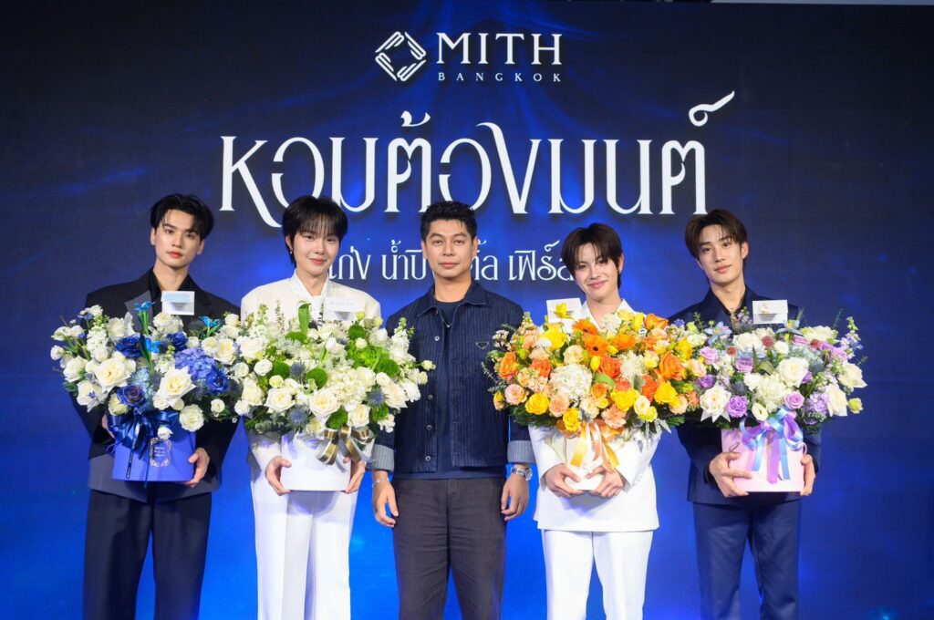 งานนี้นำโดย คุณพอ – จุติณัฏฐ์ ปิยวีรวงศ์ นักออกแบบและผู้ก่อตั้งแบรนด์น้ำหอม MITH กรี๊ดสนั่นกับการปรากฏตัวของ 4 พรีเซนเตอร์ใหม่ ที่ถ่ายทอดตัวตนผ่านน้ำหอม 4 กลิ่น 4 สไตล์ สะท้อนเอกลักษณ์และบุคลิกที่แตกต่างกันอย่างมีเสน่ห์ เก่ง หฤษฎ์ ภายใต้บุคลิกนิ่งขรึมดูนิ่งสงบ แต่ภายในกลับซ่อนความอ่อนโยน ใส่ใจ และเต็มเปี่ยมด้วยความรัก เหมาะกับกลิ่น “Mystery for Him” อันลึกลับ และน่าค้นหา ด้าน น้ำปิง นภัสกร ผู้ชายเรียบง่ายสบาย ๆ ไม่มีอะไรซับซ้อน แต่รอยยิ้มสามารถย้อมโลกที่มืดมนให้สว่างสดใส ทำให้นึกถึงกลิ่น “Silver Sparkle” ที่สดชื่น และเปล่งประกายโดดเด่น เติ้ล มติมันท์ หนุ่มเจ้าเสน่ห์ ที่ดึงดูดให้คนรอบข้างอยากเข้าใกล้เพื่อค้นหาความหมายที่ซ่อนไว้ กับกลิ่น “Twilight” เสน่ห์ในยามค่ำคืน ปิดท้ายกับ เฟิร์สวัน วรรณกร หนุ่มขี้เล่น จริงใจ ใสซื่อ ตรงกับกลิ่น “Horizon” หรือเส้นขอบฟ้า กลิ่นที่เปิดด้วยส้มแมนดารินสดชื่น กลิ่นน้ำทะเลสีฟ้าครามปลอดโปร่ง ทำให้รู้สึกผ่อนคลาย