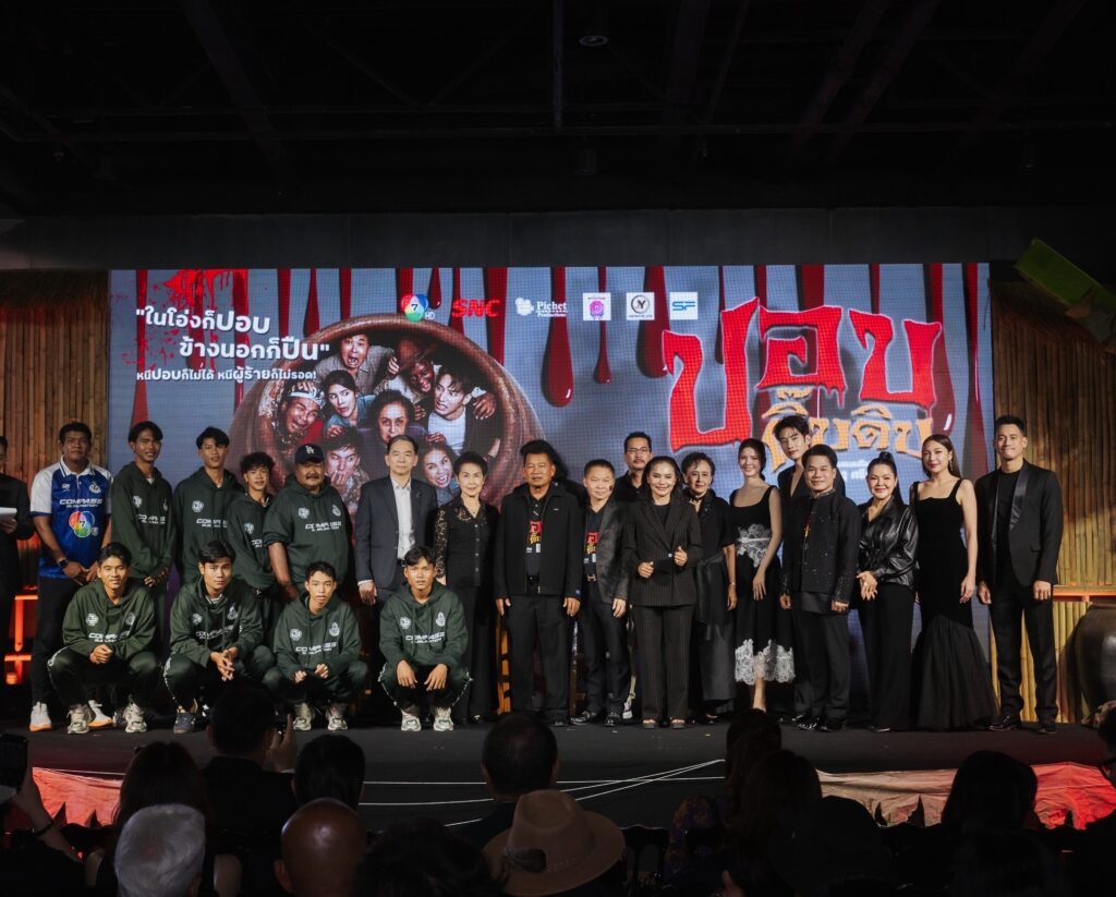 บรรยากาศงานกาล่าพรีเมียร์ เมื่อค่ำคืนวันที่ 23 ธันวาคมที่ผ่านมา ณ Sky Lobby เซ็นทรัลเวิลด์ โซนโรงภาพยนตร์ ชั้น 8 ถูกจัดให้กลายเป็นหมู่บ้านลึกลับชวนขนลุก มีทั้งดิสเพลย์สุดเอกลักษณ์ของหนังผีไทยอย่าง โอ่ง, ศาล และองค์ประกอบชวนหลอนที่พาผู้ร่วมงานให้ได้อินตั้งแต่ก้าวแรก พร้อมร่วมสร้างประสบการณ์ “ฮาสยอง” ก่อนเข้าโรงจริง และภายในงานไม่ได้มีเพียงแค่การเปิดตัวภาพยนตร์เท่านั้น แต่ยังถือเป็นงานรวมพลคนบันเทิงครั้งยิ่งใหญ่ นำโดย “ป๋าโก๋-พิเชษฐ ศรีราชา” ผู้กำกับและหัวเรือใหญ่ Pichet Productions พร้อมด้วยทัพนักแสดงนำไว้ครบทีม ไม่ว่าจะเป็น วรากร ศวัสกร, ณัฐชา รัตน์ชยางคานนท์, พูลภัทร อัตถปัญญาพล , อัศนัย เทศทะวงศ์, ราวรรณ โทนะหงษา , ถั่วแระ เชิญยิ้ม และอีกมากมาย