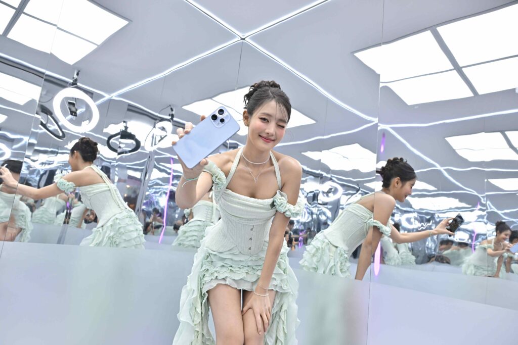 ต่อด้วยมอบความสดใสจาก ‘บอนนี่ ภัทราภัสร์’ ที่มาคอนเฟิร์มว่าเทรนด์เซลฟี่สไตล์ Gen Z ระยะนี้กำลังมาแรงแบบฉุดไม่อยู่ แค่เปิดกล้องหน้ามุมกว้าง 0.6x แล้วยืดแขนโพสท่าเก๋ ๆ ก็จะได้ภาพมุมบนสุดเท่ที่เห็นครบทั้งเมคอัพและฟิตเช็ค แถมยังเก็บภาพบรรยากาศรอบตัวได้ครบถ้วน ยิ่งเวลาไปแฮงเอาท์กับแก๊งเพื่อนเยอะแค่ไหนก็เก็บเรียบครบจบในเฟรมเดียว มาพร้อมมิติใหม่แห่งการตัดต่อคอลลาจสุดเทรนดี้ ทำให้ภาพโมเมนต์ดี ๆ สนุกกว่าที่เคย ด้วยฟีเจอร์ Popout และที่ขาดไม่ได้เวลาไปเที่ยวคือการใช้กล้องพอร์ตเทรตซูม 3.5x ที่ช่วยดึงไวบ์ภาพให้ดูโดดเด่นมีมิติเหมือนหลุดมาจากคอนเทนต์อินฟลูสายแฟตัวแม่