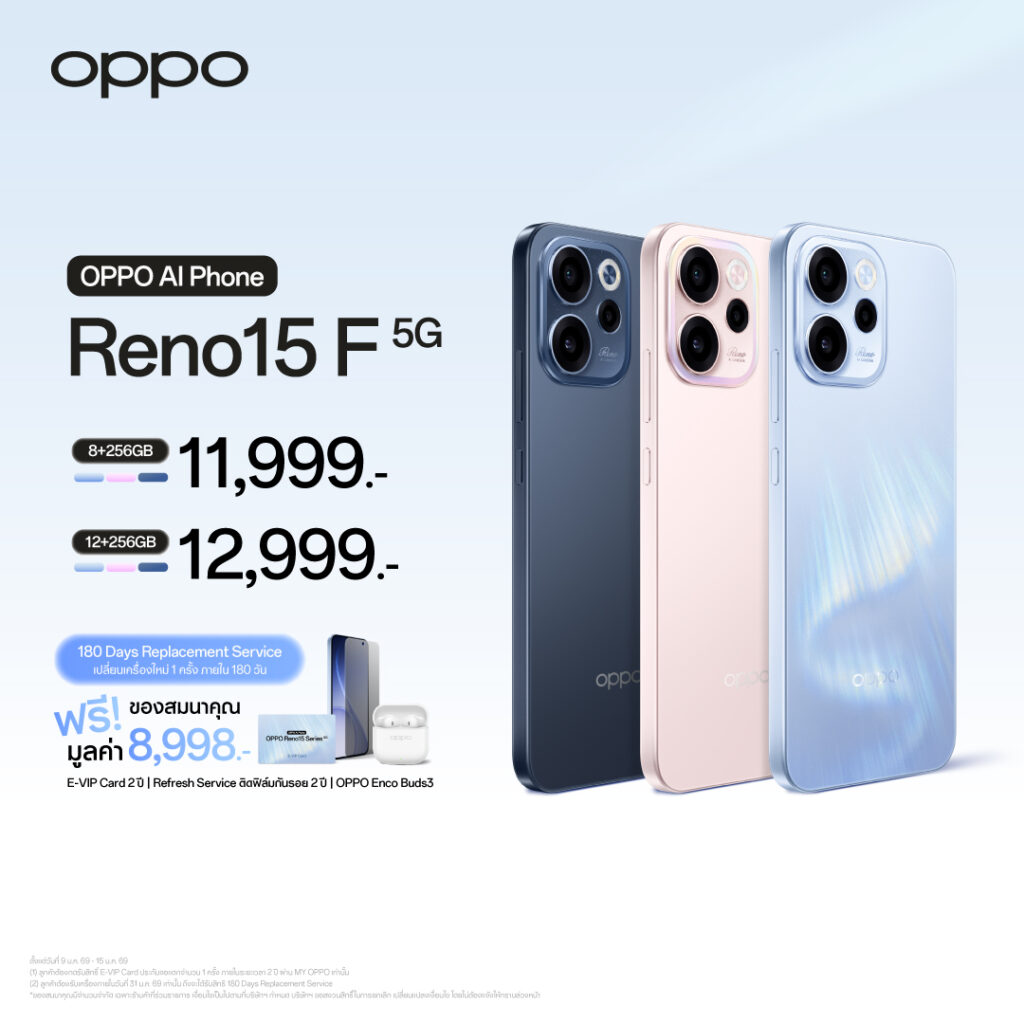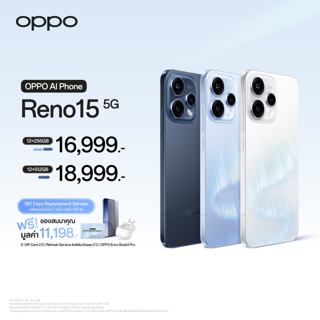 สำหรับ OPPO Reno15 Series 5G วางจำหน่ายในราคา ดังนี้