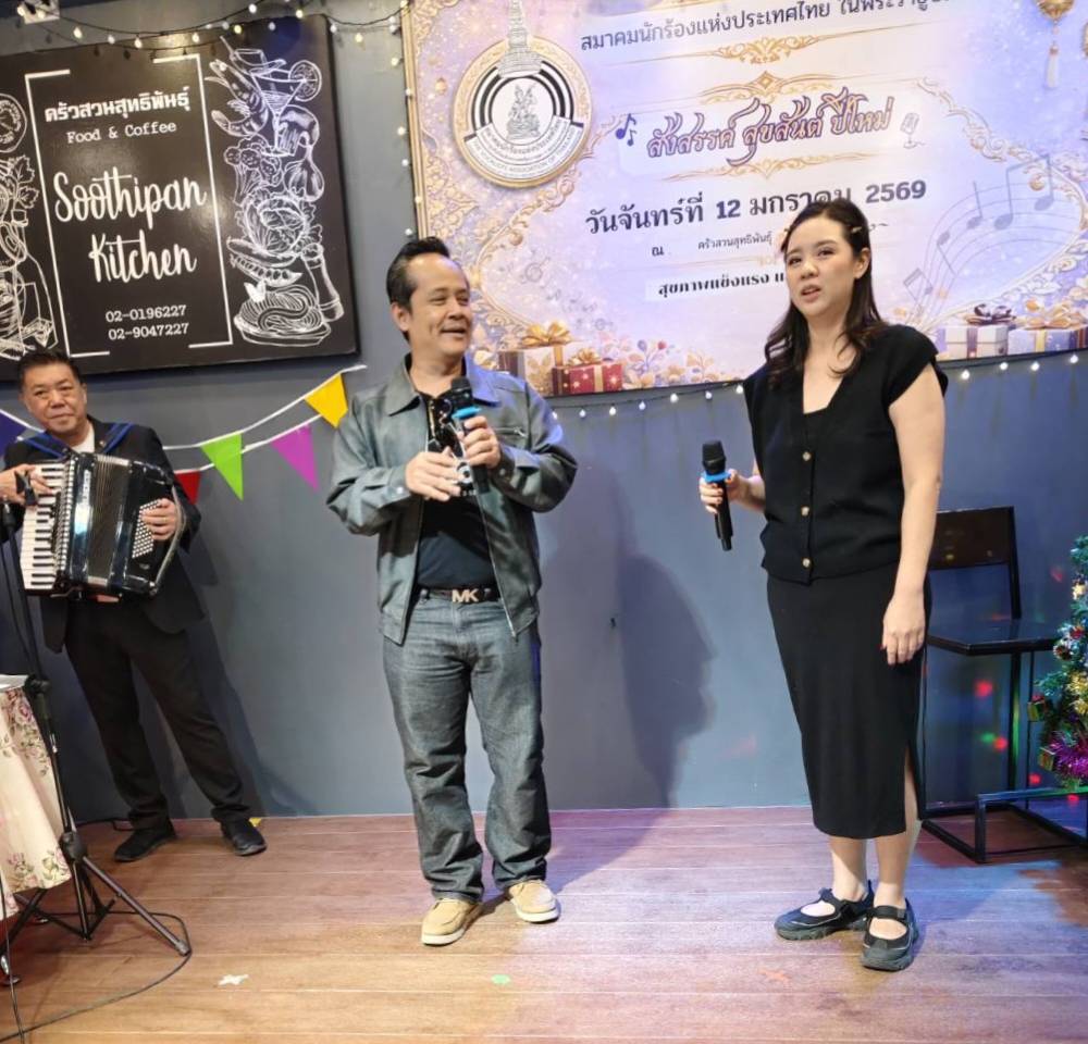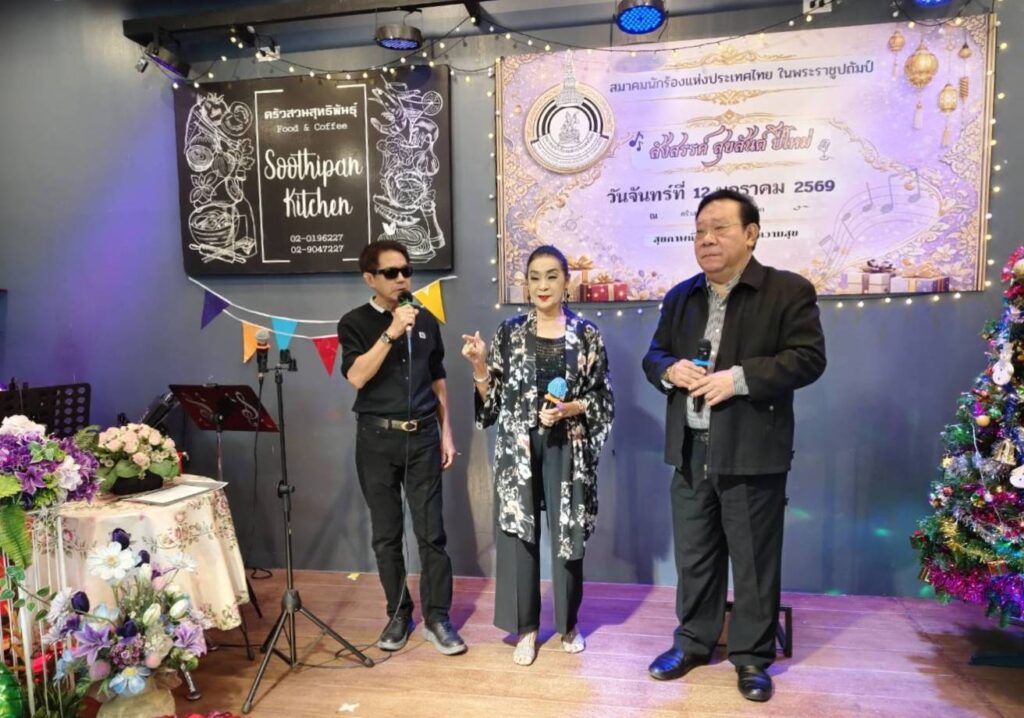 ที่ครัวสุทธิพันธ์ คลองหก ธัญบุรี ปทุมธานี สมาคมนักร้องแห่งประเทศไทย ในพระราชูปถัมภ์ สมเด็จพระเทพรัตนราชสุดาฯ จัดงานสังสรรค์ปีใหม่ 2569 โดยได้รับเกียรติ นายธานินทร์ อินทรเทพ นายกสมาคมนักร้องฯ มาอวยพรปีใหม่มวลสมาชิก