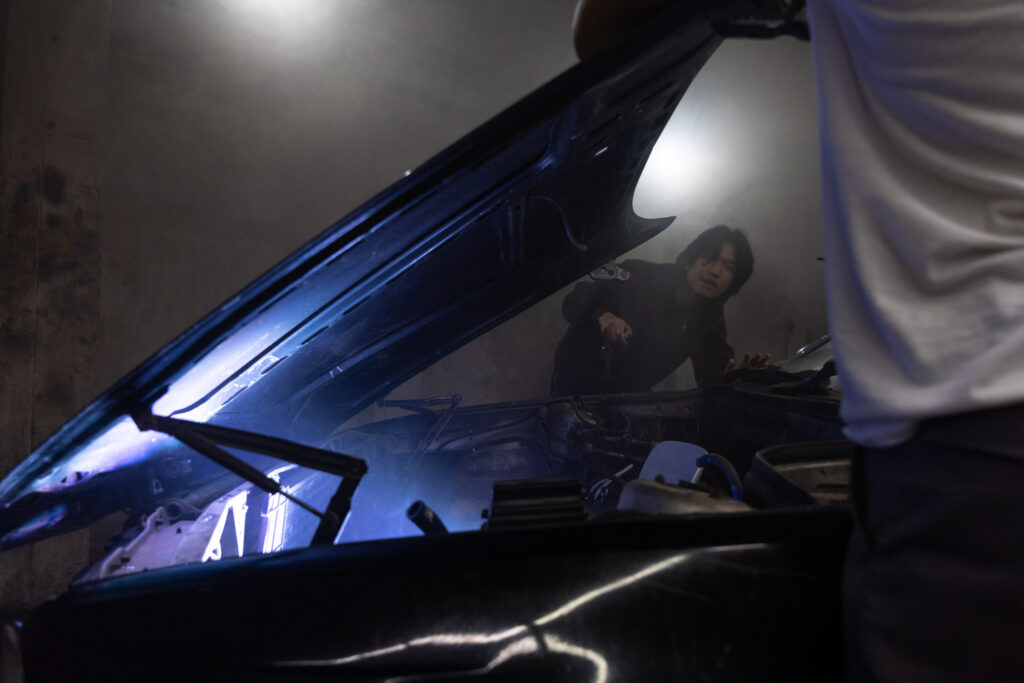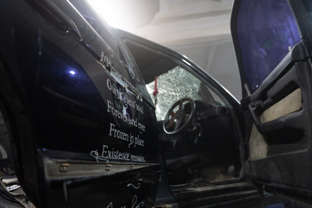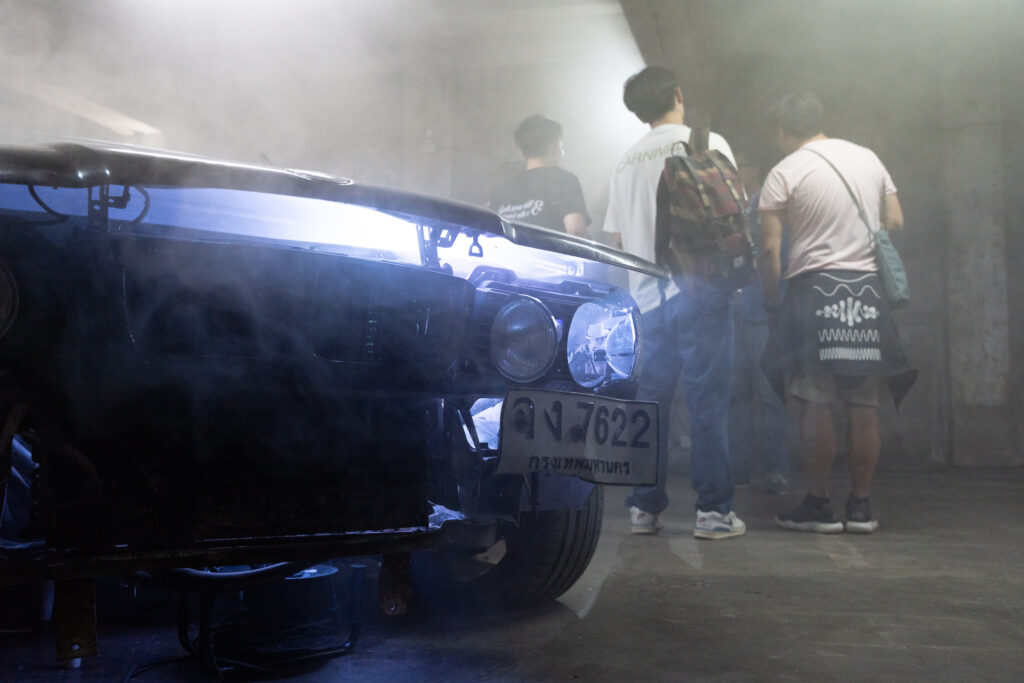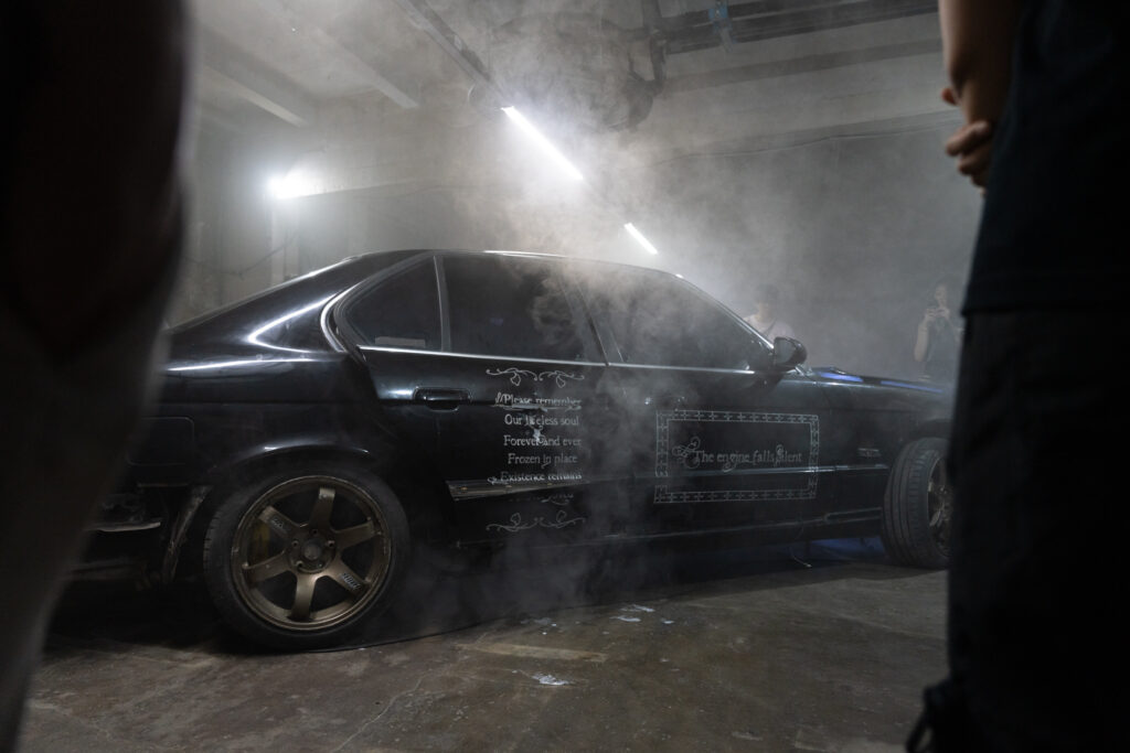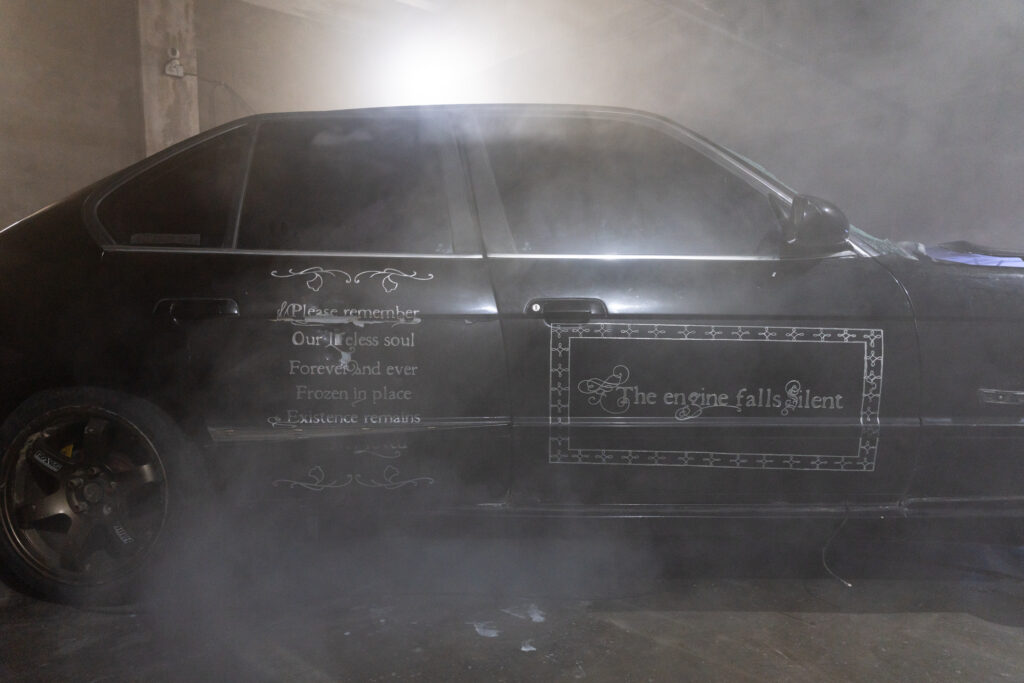 “FOREVER LOVE SOUL ENGINE” นำเสนอในรูปแบบของพิธีกรรมที่ผสานเทคโนโลยีกับแนวคิดเรื่องจิตวิญญาณ (techno-animistic ritual) เป็นพิธีศพสำหรับร่างกลจักรที่กำลังอยู่ในช่วงเปลี่ยนผ่าน ในบริบทนี้ รถยนต์เปรียบเสมือนร่างกายของมนุษย์ เป็นรูปทรงที่ยังหลงเหลือร่องรอยของการใช้งานและความทรงจำ ข้อความที่ปรากฏบนตัวถังรถทำหน้าที่คล้ายบทสวด เป็นทั้งคำไว้อาลัยและหลักฐานของประสบการณ์ที่ผ่านมา