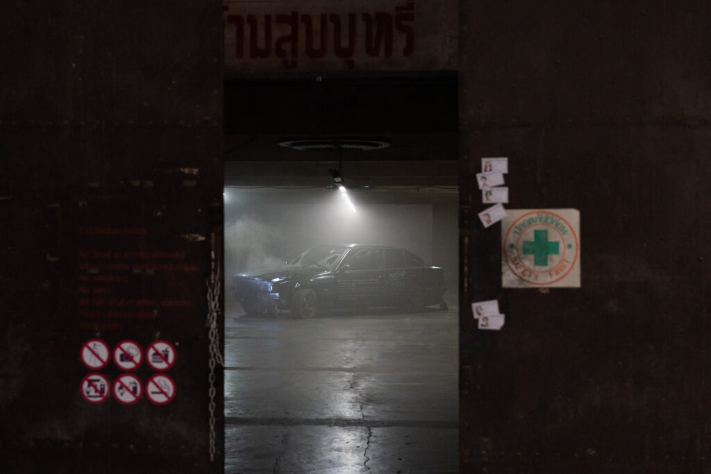 จากอู่ซ่อมรถ พื้นที่ได้แปรสภาพเป็นเสมือนโลงศพคอนกรีต ชวนให้ตั้งคำถามต่อโลกทัศน์แบบมนุษย์เป็นศูนย์กลาง (Anthropocentric) และความสัมพันธ์ของเรากับสรรพสิ่งที่ไม่ใช่มนุษย์ ในโลกเทคโนโลยีปัจจุบัน เราเคยพิจารณาสิ่งเหล่านั้นผ่านมุมมองของความตายและชีวิตหลังความตายหรือไม่ และเราจะสามารถจินตนาการถึงพิธีกรรมแบบใดเพื่อไว้อาลัยให้กับสรรพสิ่งที่ไร้ชีวิตเหล่านี้ได้บ้าง