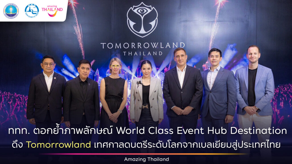 วันที่ 26 กุมภาพันธ์ 2569 การท่องเที่ยวแห่งประเทศไทย (ททท.) ร่วมกับบริษัท WE Are One World จังหวัดชลบุรี และสถานเอกอัครราชทูตแห่งราชอาณาจักรเบลเยียม แถลงข่าวการจัดงาน Tomorrowland Thailand เทศกาลดนตรีอิเล็กทรอนิกส์ระดับตำนานจากเบลเยียมอย่างเป็นทางการ กำหนดจัดขึ้นในวันที่ 11–13 ธันวาคม 2569 ณ Wisdom Valley พัทยา จังหวัดชลบุรี เพื่อยกระดับภาคการท่องเที่ยวและเศรษฐกิจสร้างสรรค์พร้อมสะท้อนถึงความเชื่อมั่นประเทศไทยในฐานะเจ้าภาพการจัดงานระดับนานาชาติ