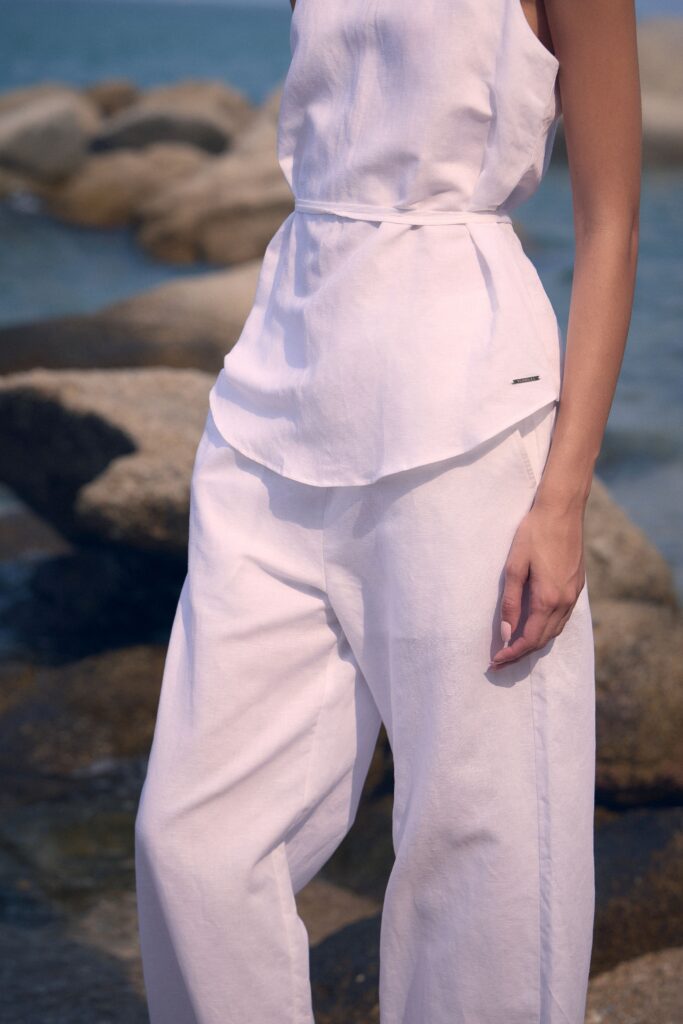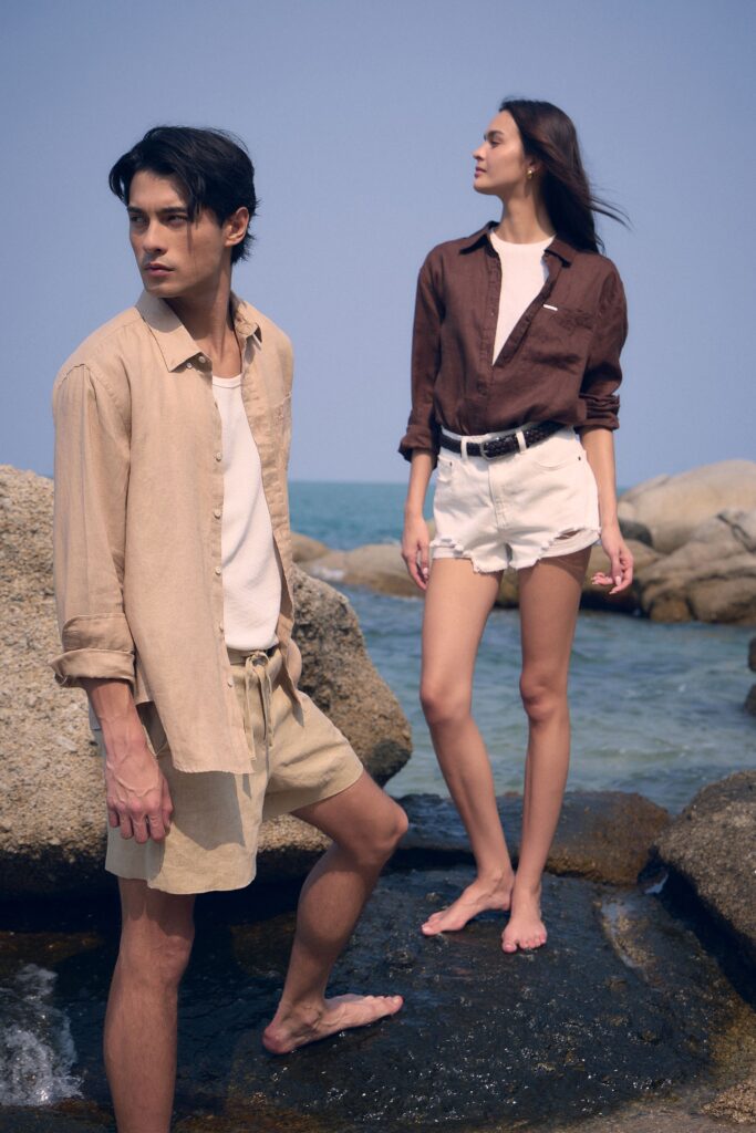 ในส่วนของลุคผู้หญิง แตน – สาธิตา ให้นิยามกับ 2 ลุคสำหรับฤดูร้อนดังนี้ 1) Smart Professional ยกระดับลุควันทำงานแต่ยังคงความคล่องตัวด้วย Linen Sleeveless Tie-Waist Top เสื้อแขนกุดผ้าลินินดีเทลผูกเอวที่ช่วยเสริมสรีระให้ดูเพรียวบาง โดยสามารถนำมาแมตซ์กับกางเกงผ้าลินินสีขาวเพื่อความโก้หรู เพื่อคอลพลีตโททัลลลุค หรือเลือกสวมคู่กับกางเกงยีนส์และรองเท้าส้นสูงคู่โปรดเพื่อเปลี่ยนลุคให้ดูเปรี้ยวและทันสมัยยิ่งขึ้น 2) Chic Casual ปลดล็อกวันพักผ่อนให้โปร่งเบาสบายแต่ยังคงความดูดี ด้วยการเลเยอร์กางเกงขาสั้นทรง Bermuda และเสื้อกล้าม คลุมทับเพิ่มเลเยอร์ด้วย Linen Shirt แบบปลดกระดุมเพื่อให้ได้ลุคที่ดู Effortless และผ่อนคลาย หรือสำหรับสาวๆ ที่วางแผนไปทริปทะเล สามารถเปลี่ยนจากเสื้อกล้ามเป็น