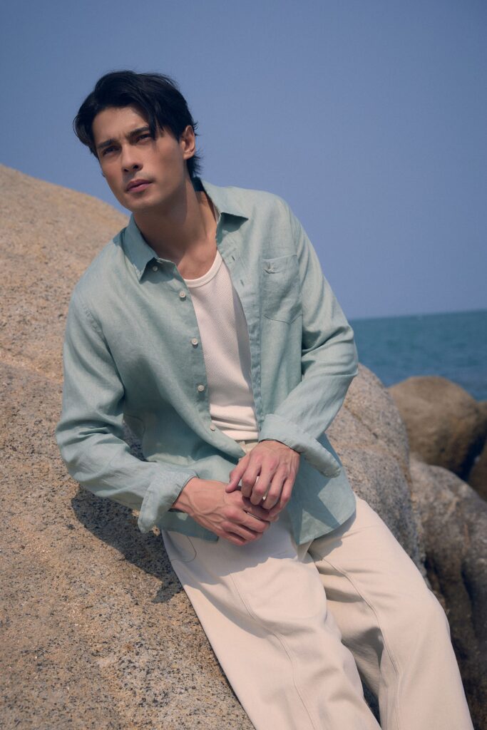 พร้อมแขกรับเชิญคนพิเศษ เอม – สรรเพชญ์ คุณากร นักแสดงหนุ่มหล่อมากความสามารถที่มีสไตล์อันเป็นเอกลักษณ์ และ แตน – สาธิตา นันทศรีรัตน์ อินฟลูเอนเซอร์สายแฟชั่นเจ้าของเพจ Weartoworkstyle ที่มาแชร์ไอเดียคอมพลีตลุคด้วยลินินให้โดดเด่นในทุกสถานการณ์ด้วยไอเทมจาก CC DOUBLE O Premium LINEN 2026 Collection เริ่มต้นกันที่ เอม – สรรเพชญ์ ให้ไอเดีย 2 ลุคสำหรับผู้ชายได้ไปแต่งตามกัน 1) Smart Casual ลุคที่บาลานซ์ระหว่างความ Formal และ Casual ไว้ด้วยกันอย่างลงตัวด้วยการสวม Tank สีขาวด้านในและเพิ่มเลเยอร์เพิ่มความน่าสนใจให้ลุคด้วยเชิ้ตลินินสีกรม คอมพลีตลุคด้วยกางเกงขายาวทรงกว้างลาย Striped 2) Easy Style เชิ้ตลินินแขนยาวสีขาว แมตซ์กับกางเกงยีนส์ตัวโปรดก็สามารถโดดเด่นไปกับ Everyday Look ในวันที่ต้องการความชิลแต่คงความมีสไตล์ตามแบบฉบับของตัวเอง