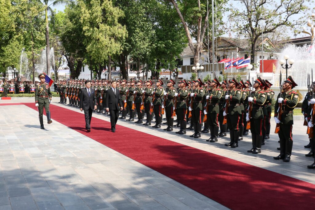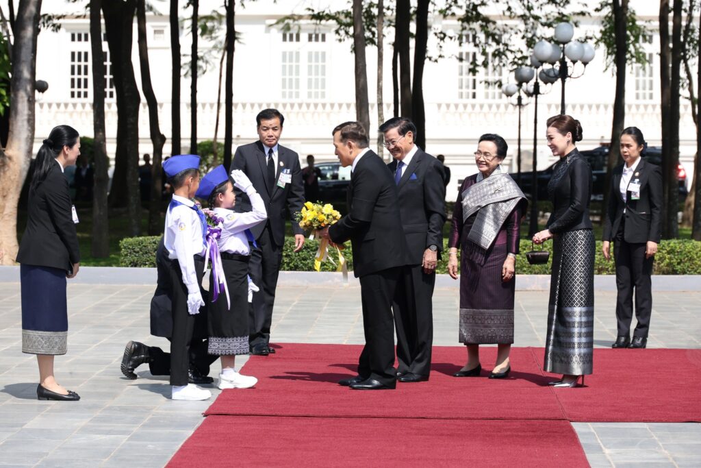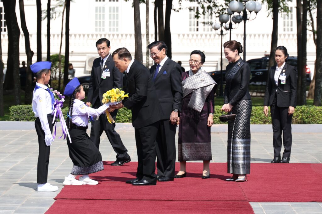 วันนี้ ๑๗ มีนาคม ๒๕๖๙ เวลา ๑๐.๐๗ น. (เวลาท้องถิ่น) พระบาทสมเด็จพระเจ้าอยู่หัว และสมเด็จพระนางเจ้า ฯ พระบรมราชินี เสด็จพระราชดำเนินโดยรถยนต์พระที่นั่ง จากโรงแรมคราวน์พลาซ่า เวียงจันทน์ ซึ่งเป็นเป็นโรงแรมที่ประทับ ไปยังหอคำ (ทำเนียบประธานประเทศ) เมื่อเสด็จพระราชดำเนินถึง นายทองลุน ลีสุลิด ประธานประเทศแห่งสาธารณรัฐประชาธิปไตยประชาชนลาว และนางนาลี สีสุลิด ภริยา เฝ้าทูลละอองธุลีพระบาทรับเสด็จ จากนั้น เด็กหญิงชาวลาว และเด็กชายชาวลาว เฝ้าทูลละอองธุลีพระบาท ทูลเกล้าทูลกระหม่อมถวายช่อดอกไม้ แล้วเสด็จพระราชดำเนินพร้อมด้วยประธานประเทศขึ้นแท่นรับการถวายความเคารพ กองทหารเกียรติยศถวายความเคารพ และทรงตรวจแถวกองทหารเกียรติยศ เมื่อตรวจแถวทหารกองเกียรติยศ เสร็จแล้ว พระบาทสมเด็จพระเจ้าอยู่หัว และสมเด็จพระนางเจ้า ฯ พระบรมราชินี เสด็จพระราชดำเนินพร้อมด้วยประธานประเทศ และภริยา ไปยังแถวคณะทางการฝ่ายลาว ทรงรับการทูลแนะนำคณะทางการฝ่ายลาวตามลำดับ เสร็จแล้ว พระราชทานพระบรมราชวโรกาสให้ นายธานี ทองภักดี รองราชเลขานุการในพระองค์ แนะนำคณะทางการฝ่ายไทยแก่ประธานประเทศ และภริยา แล้วเสด็จขี้นหอคำ จากนั้น เสด็จพระราชดำเนินไปยังห้องเฝ้า พระราชทานพระบรมราชวโรกาสให้ นายทองลุน ลีสุลิด ประธานประเทศแห่งสาธารณรัฐประชาธิปไตยประชาชนลาว และนางนาลี สีสุลิด และภริยา เฝ้า ในโอกาสเสด็จพระราชดำเนินเยือนสาธารณรัฐประชาธิปไตยประชาชนลาวอย่างเป็นทางการ สมควรแก่เวลาจึงเสด็จพระราชดำเนินไปยังตำหนักผ้าไหมลาวโบราณ #ทรงพระเจริญ