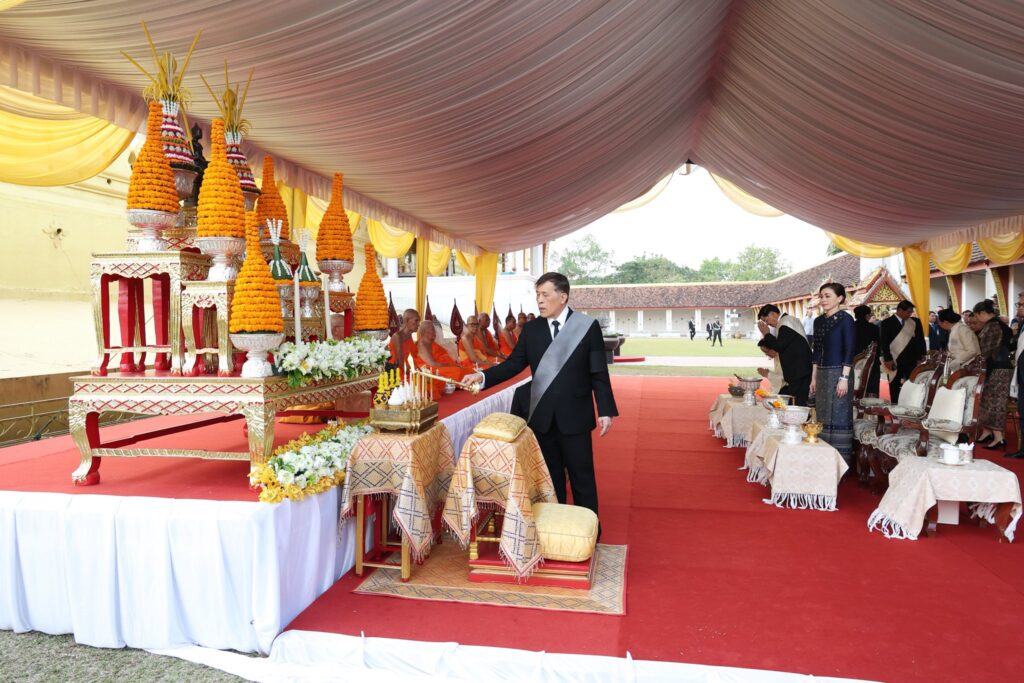 วันนี้ ๑๘ มีนาคม ๒๕๖๙ เวลา ๑๖.๕๐ น. (เวลาท้องถิ่น) พระบาทสมเด็จพระเจ้าอยู่หัว และสมเด็จพระนางเจ้า ฯ พระบรมราชินี เสด็จพระราชดำเนินโดยรถยนต์พระที่นั่ง จากโรงแรมคราวน์พลาซ่า เวียงจันทน์ ซึ่งเป็นเป็นโรงแรมที่ประทับ ไปทรงสักการะพระธาตุหลวง และพระพุทธรูปสำคัญประจำพระธาตุหลวง ณ พิพิธภัณฑ์พระธาตุหลวง เวียงจันทน์ เมื่อเสด็จพระราชดำเนินถึง ประธานประเทศ และภริยา พร้อมด้วยรัฐมนตรีว่าการกระทรวงวัฒนธรรมและการท่องเที่ยว เจ้าครองนครหลวงเวียงจันทน์ และคณะกรรมการปกครองเมืองไซเสดถา และประชาชนชาวลาว เฝ้าทูลละอองธุลีพระบาทรับเสด็จ จากนั้น พระบาทสมเด็จพระเจ้าอยู่หัว และสมเด็จพระนางเจ้า ฯ พระบรมราชินี เสด็จพระราชดำเนินขึ้นหอไหว้ด้านทิศตะวันตก พร้อมด้วยประธานประเทศและภริยา ทรงจุดธูปเทียนเครื่องสักการะแบบลาว ทรงสักการะพระธาตุหลวง และพระพุทธรูปสำคัญประจำพระธาตุหลวง ตามธรรมเนียมฝ่ายลาว เสร็จแล้ว เสด็จพระราชดำเนินไปยังพลับพลาพิธีสงฆ์ ทรงจุดธูปเทียนบูชาพระรัตนตรัย พระมหาเถระลาว ๙ รูป เจริญพระพุทธมนต์ โดยมีพระอาจารย์ใหญ่มะหาเหวด มะเสไน ประธานศูนย์กลางองค์การพุทธศาสนาสัมพันธ์แห่งสาธารณรัฐประชาธิปไตยประชาชนลาว เป็นประธาน เสร็จแล้ว ทรงประเคนจตุปัจจัยไทยธรรม แด่พระมหาเถระลาว ทรงหลั่งทักษิโณทก ทรงลาพระมหาเถระลาว แล้วทรงกราบที่หน้าเครื่องนมัสการ ในการนี้ พระอาจารย์ใหญ่มะหาเหวด มะเสไน ถวายพระพุทธรูปองค์ตื้อ จำนวน ๑ องค์ แด่พระบาทสมเด็จพระเจ้าอยู่หัว จากนั้น ทรงลงพระปรมาภิไธย และพระนามาภิไธย ไว้เป็นที่ระลึก สมควรแก่เวลาจึงเสด็จพระราชดำเนินออกจากพลับพลาที่ประทับ ไปประทับรถยนต์พระที่นั่ง เสด็จพระราชดำเนินไปยังท่าอากาศยานนานาชาติวัดไต นครหลวงเวียงจันทน์ ณ ที่นั้น นายสะเหลิมไซ กมมะลิด รองนายกรัฐมนตรี นางอาลุนี กมมะลิด ภริยารองนายกรัฐมนตรี สาธารณรัฐประชาธิปไตยประชาชนลาว นางครองขนิษฐ รักษ์เจริญ เอกอัครราชทูต ณ เวียงจันทน์ ผู้ช่วยทูตฝ่ายทหารบกและภริยา ผู้ช่วยทูตฝ่ายทหารอากาศและภริยา รวมทั้งข้าราชการฝ่ายลาวและฝ่ายไทย เฝ้าทูลละอองธุลีพระบาทส่งเสด็จ จากนั้น พระบาทสมเด็จพระเจ้าอยู่หัว และสมเด็จพระนางเจ้า ฯ พระบรมราชินี ทรงพระดำเนินผ่านทหารกองเกียรติยศขึ้นเครื่องบินพระที่นั่ง เสด็จพระราชดำเนินกลับประเทศไทย เสร็จสิ้นการเสด็จพระราชดำเนินเยือนสาธารณรัฐประชาธิปไตยประชาชนลาวอย่างเป็นทางการ ระหว่างวันที่ ๑๖ – ๑๘ มีนาคม ๒๕๖๙#ทรงพระเจริญ