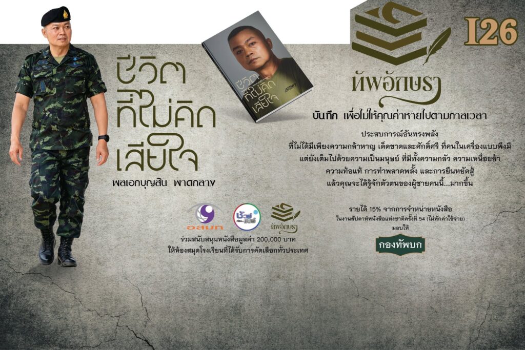 อย่าพลาด! รีบเป็นเจ้าของก่อนหมด “ชีวิตที่ไม่คิดเสียใจ” หนังสือทรงคุณค่าที่นักอ่านกำลังตามหาที่ “บูท I 26” สำนักพิมพ์ทัพอักษรา ภายในงานสัปดาห์หนังสือแห่งชาติ ครั้งที่ 54 และสัปดาห์หนังสือนานาชาติ ครั้งที่ 24 ระหว่างวันที่ 26 มีนาคม – 6 เมษายน 2569 ณ ศูนย์การประชุมแห่งชาติสิริกิติ์