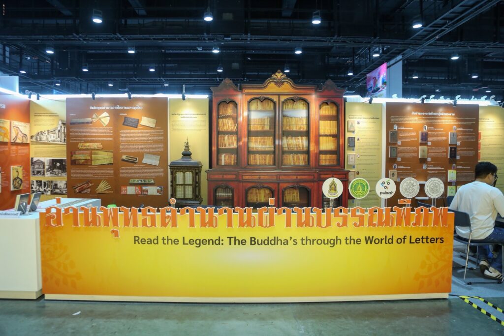 นิทรรศการ “อ่านพุทธตำนานผ่านบรรณพิภพ” นำเสนอคัมภีร์ใบลานสมัยอยุธยา พระไตรปิฎกจารทองคำ หนังสือสมุดไทยเรื่องพระมาลัย และพระไตรปิฎกฉบับพิมพ์ครั้งแรกในสมัยรัชกาลที่ 5 จากหอสมุดแห่งชาติ พร้อมกิจกรรมเขียนใบลานและกิจกรรมเรียนรู้ผ่าน QR Code เพื่อสื่อสารองค์ความรู้ทางพระพุทธศาสนาแก่ผู้เข้าชม