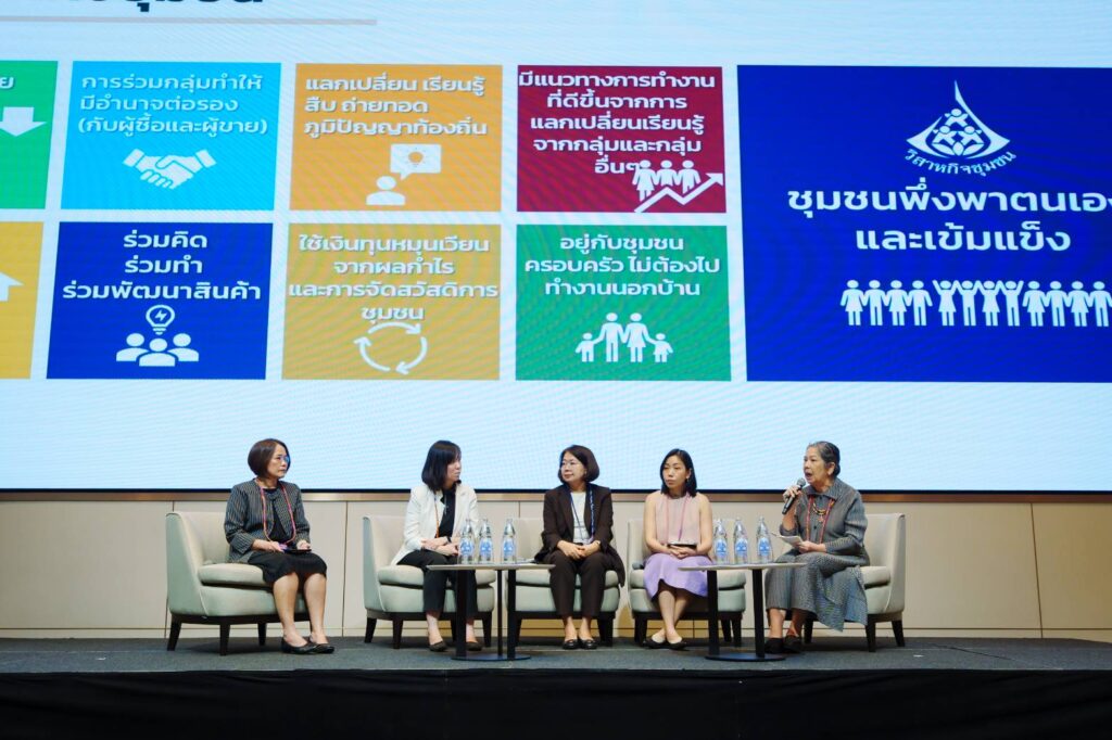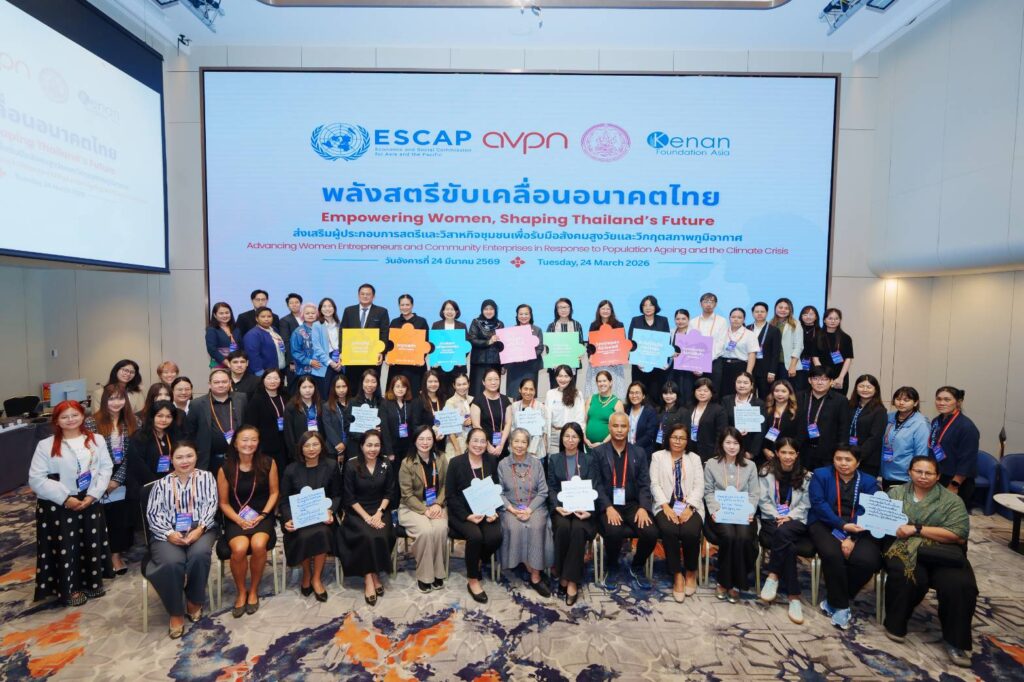 “พลังสตรีขับเคลื่อนอนาคตไทย: เวทีระดับชาติว่าด้วยการส่งเสริมผู้ประกอบการสตรีและวิสาหกิจชุมชน เพื่อรับมือสังคมสูงวัยและวิกฤตสภาพภูมิอากาศ” โดยมีผู้เข้าร่วมกว่า 105 คน จากภาคีเครือข่ายกว่า 42 หน่วยงาน โดยได้รับข้อเสนอสำคัญ 3 ข้อ ได้แก่ 1.) สตรีกับโครงสร้างประชากรและอนาคตประเทศ: การส่งเสริมสตรีคือการเตรียมความพร้อมประเทศต่อการเปลี่ยนผ่านด้านประชากร เศรษฐกิจ และสังคม 2.) Climate change กับวิสาหกิจชุมชน: สิ่งแวดล้อมไม่ใช่แค่ภาพลักษณ์ แต่กำลังเป็น “เงื่อนไขทางการค้า” ที่กระทบรายได้และการอยู่รอดของผู้หญิง 3.) Care economy กับวิสาหกิจชุมชน: การใช้ทรัพยากรชุมชนสร้างงานใกล้บ้าน ดูแลกันได้ และเสริมเศรษฐกิจฐานรากให้เติบโตอย่างยั่งยืน ผ่านการหารือรวมถึงจัดลำดับความสำคัญและปรับแนวทางการดำเนินนโยบายและ/หรือการระดมทรัพยากรโดยอิงจากข้อเสนอของกลุ่มย่อยและมุ่งเน้นสิ่งที่สามารถขับเคลื่อนได้จริงภายใต้ระบบที่มีอยู่
