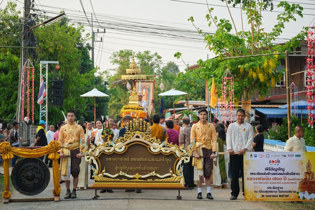 สุขสยาม ณ ไอคอนสยาม ผนึกกําลังพันธมิตรชั้นนำทั้งภาครัฐ และ เอกชน นำโดย กระทรวงวัฒนธรรม,กระทรวงการท่องเที่ยวและกีฬา, การท่องเที่ยวแห่งประเทศไทย(ททท.), Bangkok Water Festival 2026, บริษัท ไทยเบฟเวอเรจจำกัด (มหาชน), รู้รักสามัคคี วิสาหกิจเพื่อสังคมประเทศไทย, ธนาคารกสิกรไทย และวัดปากน้ำ บุ่งสระพัง จังหวัดอุบลราชธานี ร่วมสืบสานประเพณีไทย ในเทศกาลสงกรานต์สุดยิ่งใหญ่ ด้วยการประกอบพิธีบวงสรวง “หลวงพ่อเงิน” พระพุทธรูปเงิน ปางมารวิชัย ศิลปะเชียงแสนล้านช้าง พระพุทธรูปศักดิ์สิทธิ์โบราณ คู่บ้านคู่เมือง อายุกว่า 700 ปี ซึ่งได้รับการยกย่องว่าเป็น “พระชัยหลังช้างแห่งแผ่นดินอีสาน” จากวัดปากน้ำ (บุ่งสระพัง) จังหวัดอุบลราชธานี พร้อมกันนี้ยังได้อัญเชิญพระอุปคุตเถระ และน้ำศักดิ์สิทธิ์จากท่าน้ำเจดีย์บุ่งสระพัง เพื่อมาประดิษฐานเป็นสิริมงคล ในงาน “สุขสยาม สนุกสนาน สงกรานต์ บ้านฉัน” โดยจัดขึ้นภายใต้แนวคิด “มหาศรัทธาแห่งแม่น้ำมูล สู่ปฐพีบุญลุ่มน้ำเจ้าพระยา” เพื่อให้ประชาชนและนักท่องเที่ยวได้ร่วมสรงน้ำ กราบสักการะ และน้อมขอพรเพื่อความเป็นสิริมงคลในช่วงเทศกาลปีใหม่ไทย ซึ่งจะอัญเชิญขึ้นประดิษฐานระหว่างวันที่ 8-15 เมษายน 2569 ณ เมืองสุขสยาม ชั้น G ไอคอนสยาม